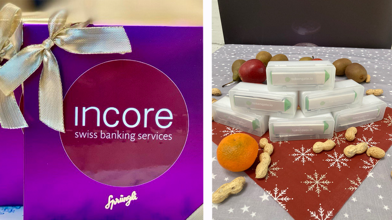Hinter dem achtzehnten Türchen versteckt sich eine Packung Sprüngli Schokolade der InCore Bank mit einem kabellosen Mobil-Aufladegerät von Tokengate.