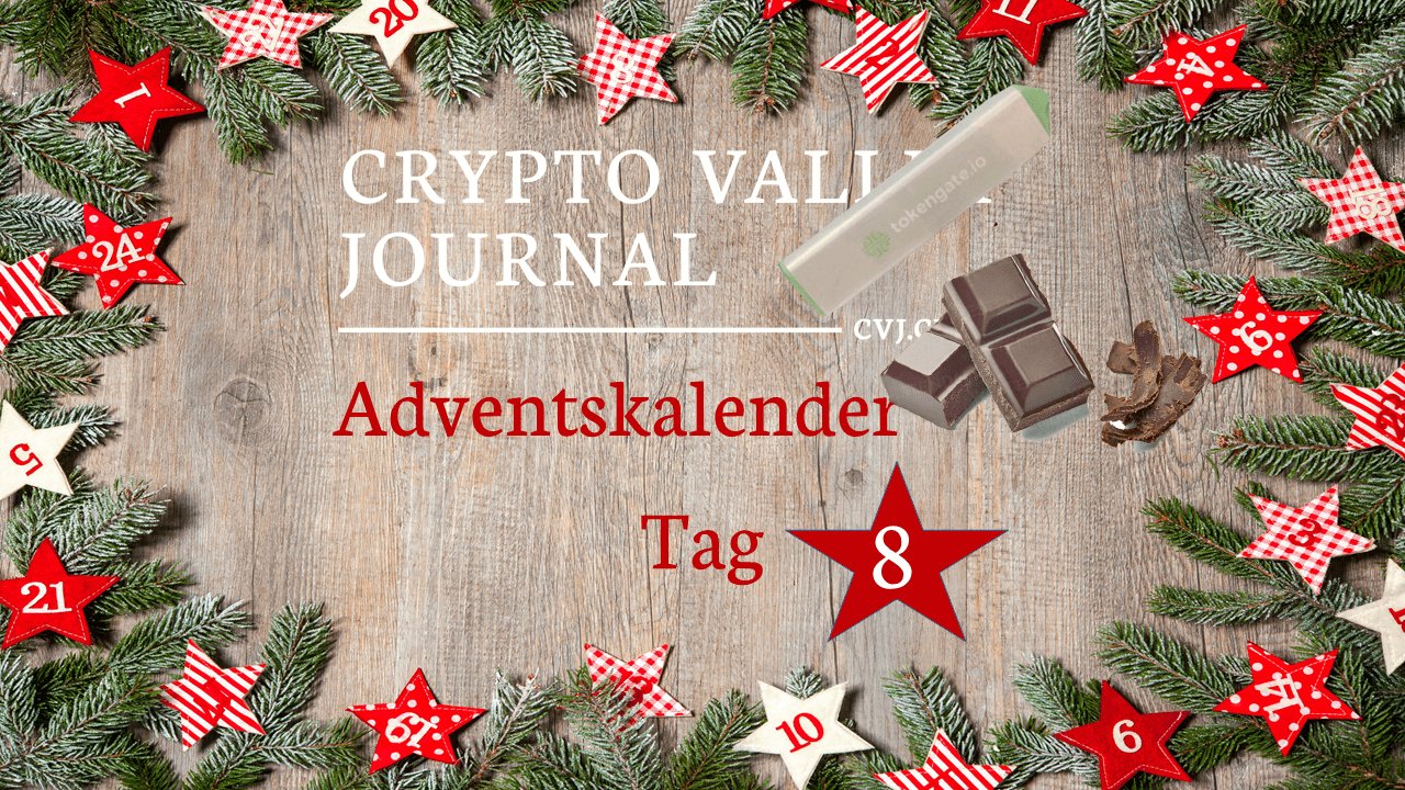 Hinter dem achten Türchen versteckt sich eine Packung Sprüngli Schokolade der InCore Bank mit einem kabellosen Mobil-Aufladegerät von Tokengate.