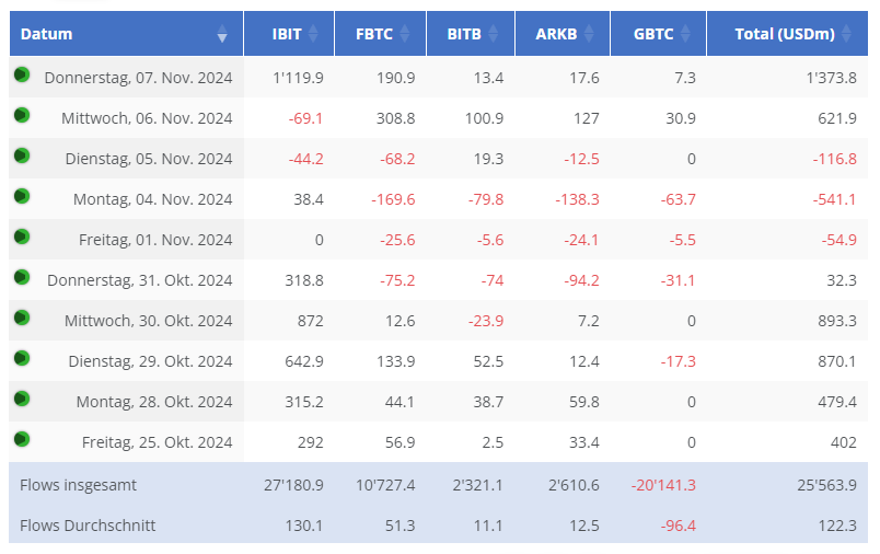 Bitcoin hat diese Woche zweimal ein neues Allzeithoch (ATH) erreicht, am 6. November die 75'000 USD-Marke durchbrochen und sich am 7. November 77'000 USD genähert. Dieser Anstieg wurde in erster Linie durch die positive Marktstimmung im Zusammenhang mit Trumps Sieg angetrieben.