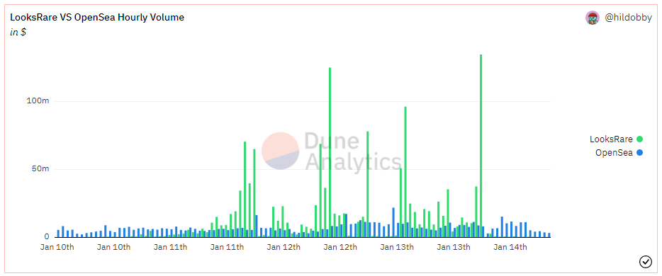 Viele Mitglieder der NFT-Community hatten gehofft, dass OpenSea das Projekt ebenfalls mit einem Token-Airdrop für frühe Nutzer auf den Markt dezentralisieren würde, doch die IPO-Pläne liessen etwas anderes vermuten. Ähnlich wie beim "Vampire-Angriff" von Sushiswap auf Uniswap gegen Ende 2020 entschieden sich deshalb einige Projekte, OpenSea-Nutzer durch einen eigenen Airdrop auf ihre Plattform zu locken. Den ersten Schritt machte an Heiligabend OpenDAO mit ihrem SOS-Token, diese Woche folgte der LOOKS-Token des NFT-Marktplatzes LooksRare.