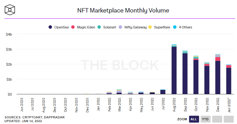 OpenSea bezeichnet sich selbst als den ersten und grössten NFT-Marktplatz der Welt. Man kann sich die Plattform als eBay für digitale Objekte und Sammlerstücke vorstellen. Der Peer-to-Peer-Marktplatz profitierte insbesondere im Jahr 2021 vom bemerkenswerten Aufstieg der NFTs. Während den vergangenen vier Monaten verzeichnete OpenSea knapp 3 Milliarden US-Dollar an monatlichen Handelsvolumen. Allerdings stösst Kritik zur zentralisierten Stuktur des Unternehmens bei immer mehr Nutzern auf Anklang.