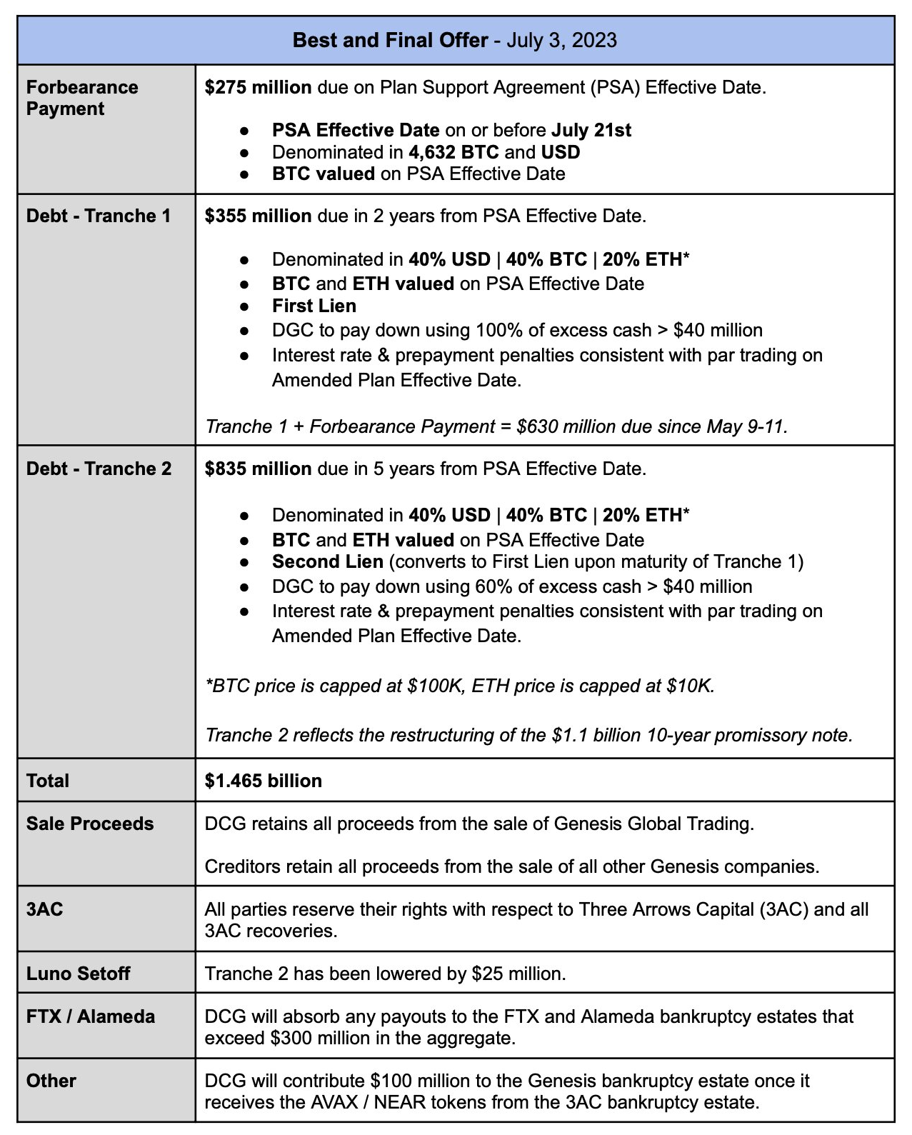 In seinem offenen Brief an DCG-Gründer Barry Silbert wirft Cameron Winklevoss dem Krypto-Konglomerat vor, Kunden von Genesis bewusst hinters Licht geführt zu haben. Das durch Three Arrows hinterlassene Loch von 1.2 Mrd. USD habe die Gruppe nicht tatsächlich absorbiert und bezüglich einer Rückzahlung von 630 Mio. USD sei DCG seit zwei Monaten im Verzug. Das Unternehmen habe nun zwei Tage Zeit, um auf ein Ultimatum zu antworten. Ansonsten werde Gemini eine Klage gegen die Digital Currency Group sowie CEO Barry Silbert persönlich einreichen.