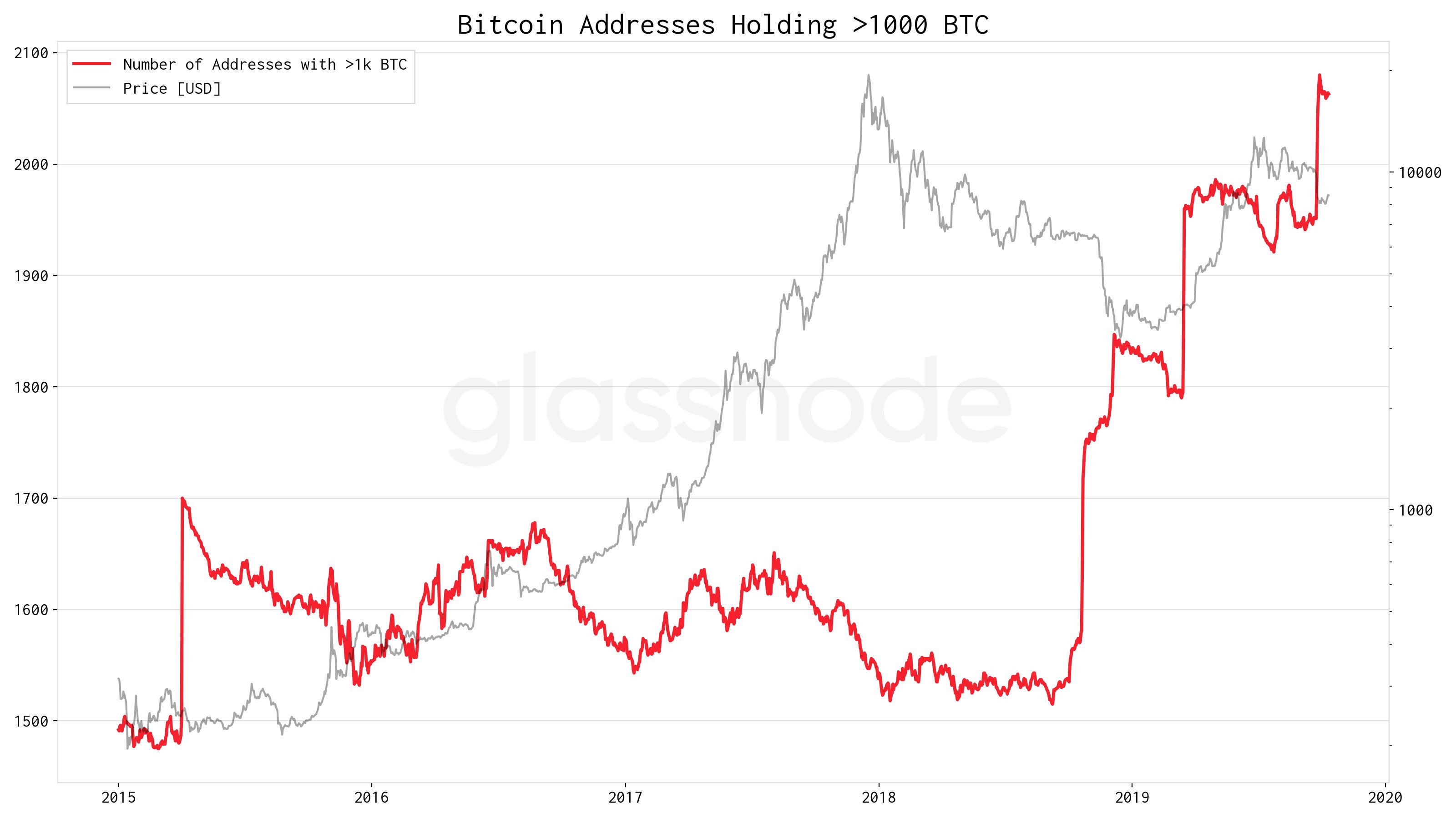 The number of wallets exceeding 1,000 Bitcoins has recorded a strong growth since the end of 2018. The 1,341 addresses with a value greater than $10 million are often attributed to “cold storage wallets”s. However, the lost Bitcoins segment is also represented in this group.