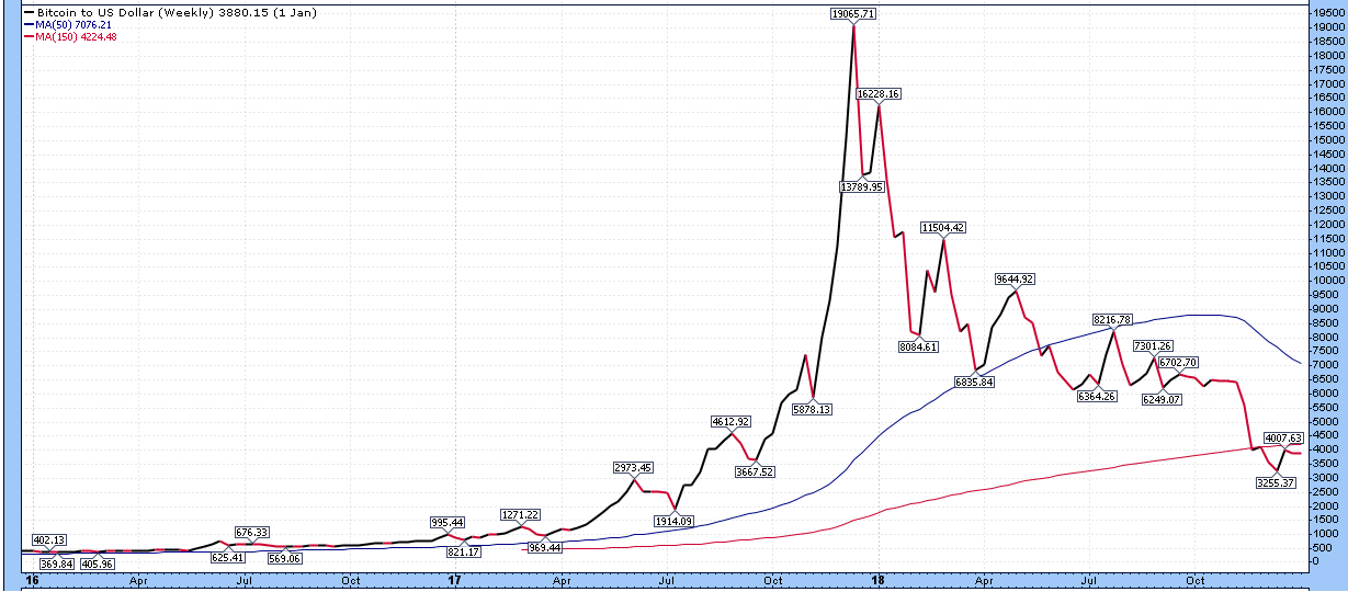 Ich habe über Bitcoin erstmals im Herbst 2017 in einem Artikel berichtet und war für die Zwischenzeit neutral bis schwach bärisch gestimmt und war keine Position eingegangen. Die Technologie war gut durchdacht, aber ich hatte Bedenken wegen der euphorischen Stimmung und der Marktverwässerung. Ich behauptete weder, dass es tiefer gehen müsse, noch sah ich es bullisch und trat lediglich zur Seite, um weiter zuzusehen.
