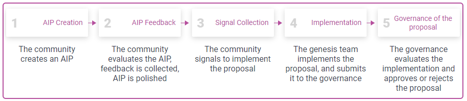 Der AAVE-Token wurde im Oktober 2021 als ERC-20-Token eingeführt, mit dem Ziel, die Verwaltung des Protokolls an die Community zu übergeben und Aave zu einem dezentraleren Protokoll zu machen. AAVE ermöglicht es seinen Inhabern, über Aave Improvement Proposals (AIPs) über Protokollverbesserungen abzustimmen und zu entscheiden. AIPs können zum Beispiel das Hinzufügen neuer Sicherheiten zum Protokoll oder die Änderung der Risikoparameter bestehender Token beinhalten.
