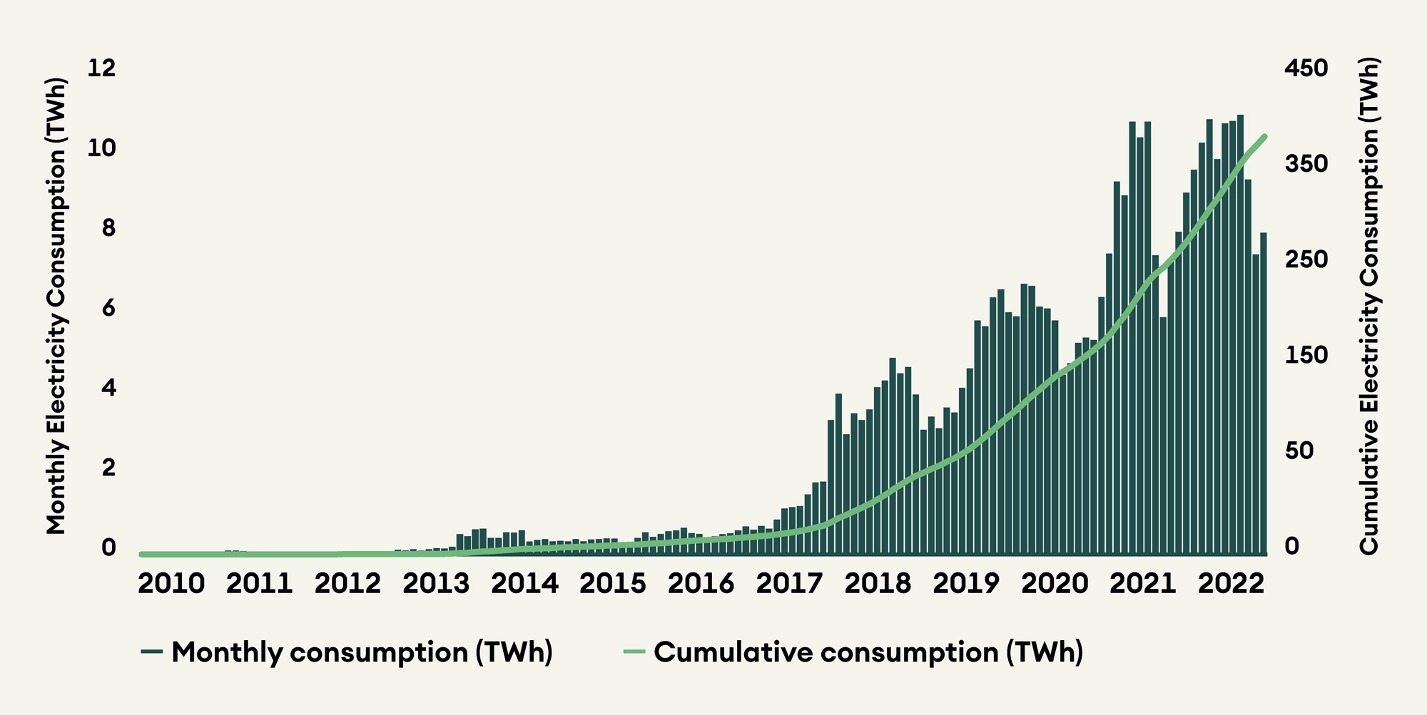 Das erste Problem bei Kryptowährungen ist oft der Energieverbrauch. Da Bitcoin (BTC) die bekannteste Kryptowährung überhaupt ist, werden meist alle zu Bitcoin zutreffenden Aspekte, auf alle kleinern Kryptowährungen abstrahiert. Dies ist jedoch ein grosser Trugschluss. Nach Angaben von Bloomberg wird der Energieverbrauch von Bitcoin von 6.6 Terrawattstunden im Jahr 2017 auf 138 Terawattstunden Anfang 2022 gestiegen sein. Sein jährlicher Stromverbrauch ist grösser als der von gesamt Norwegen. Der CO2-Fussabdruck von Bitcoin beträgt rund 114 Millionen Tonnen Kohlendioxid-Emissionen pro Jahr. (Vergleichbar mit dem von Belgien.)
