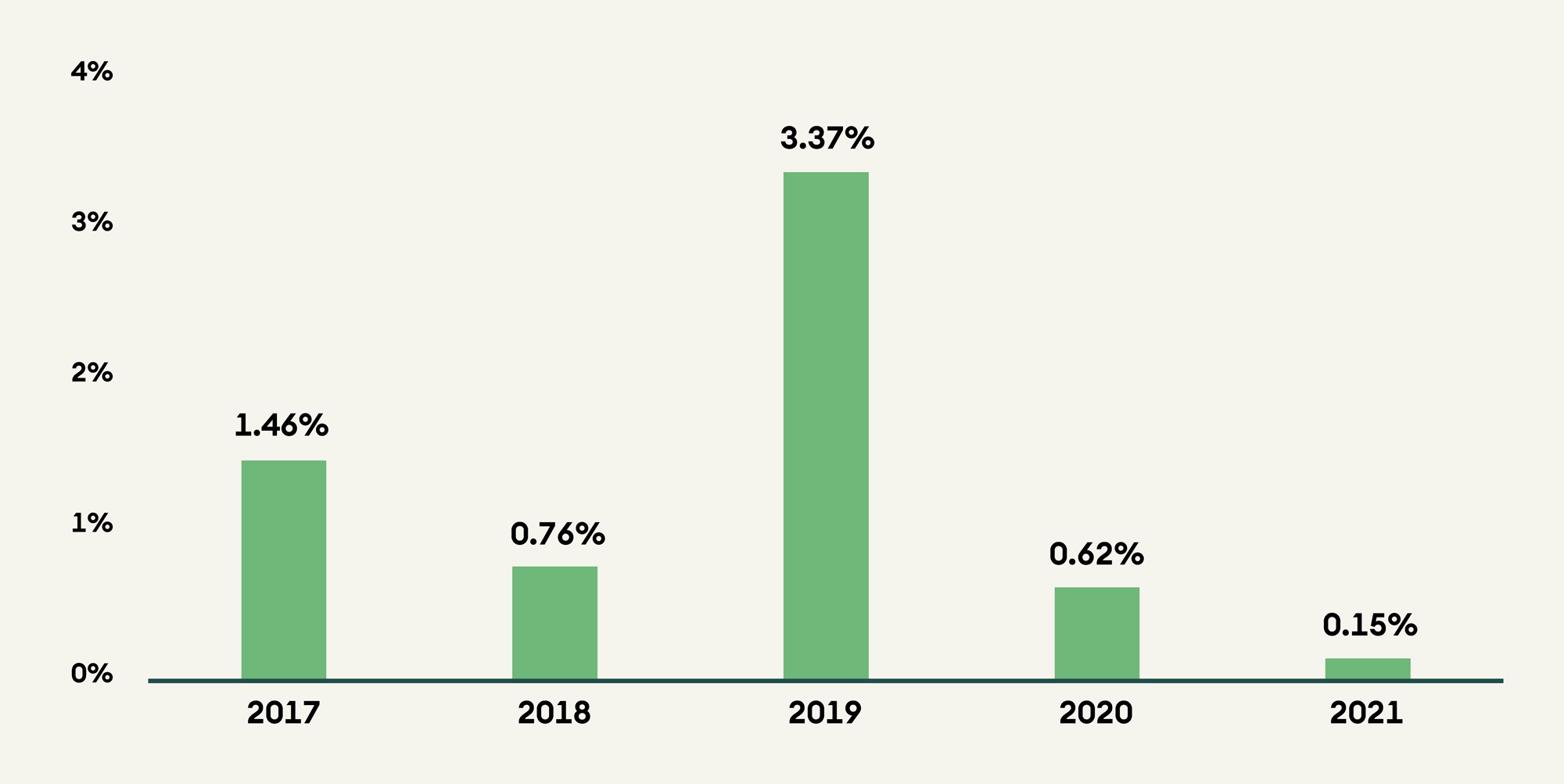 Einem Chainalysis-Bericht aus dem Jahr 2022 zufolge erreichte die Kryptowährungskriminalität im Jahr 2021 ein Allzeithoch, wobei mehr als 14 Mrd. USD in illegale Wallets verschoben wurden. Vergleicht man jedoch die 14 Milliarden USD mit dem gesamten Kryptowährungs-Transaktionsvolumen, beträgt der Anteil nur 0.15% und ist gegenüber den vorherigen Jahren zurückgegangen.