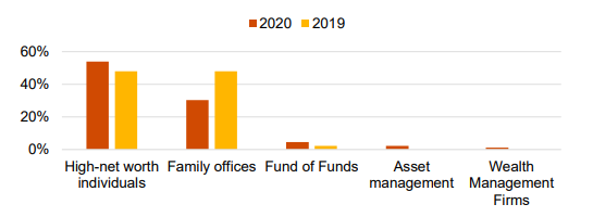 Die grössten Investoren in Krypto-Hedgefonds sind laut der Studie "High Net Worth Individuals" (HNWIs) - mehr als die Hälfte der befragten Fonds bezeichneten sie als den häufigsten Anlegertyp. Family Offices nehmen dabei mit 30% den zweiten Platz ein.