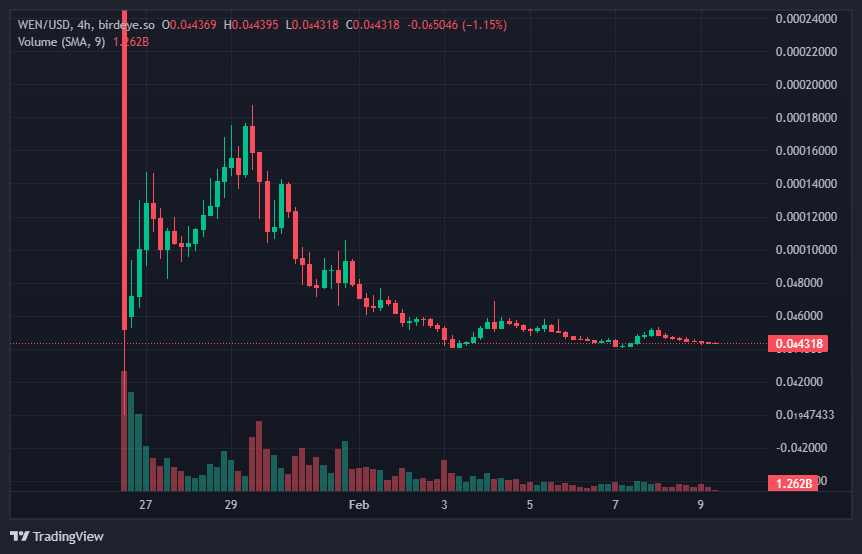 Zehn Tage später lancierte das Jupiter-Team den nächsten Token. Der "WEN" Memecoin (Krypto-Jargon für wann, engl. = when) sei der erste echte Token des Entwicklerteams, um das eigene Launchpad zu testen. Als Memecoin habe WEN zwar keinen Nutzen, sollte jedoch einen Wert besitzen. Statt einem klassisch zweiseitigen Liquiditätspool von WEN und USDC nutzte das Jupiter-Launchpad einen einseitigen Pool. Das Entwicklerteam stellte nur WEN-Token bereit. Durch Käufe von Nutzern füllte sich das Token-Paar mit USDC. Auch WEN fiel seit seinem Höchststand um -75%.