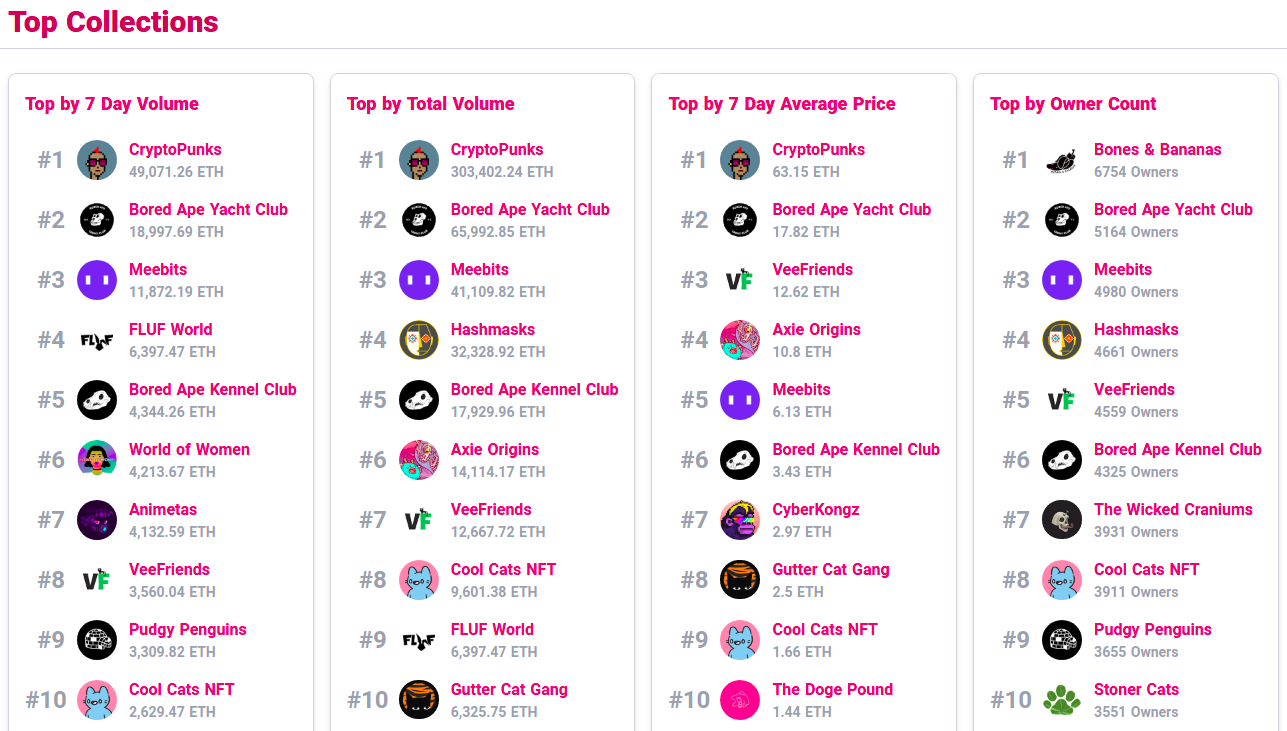 Meebits, Hashmasks, Bored Ape Yacht Club