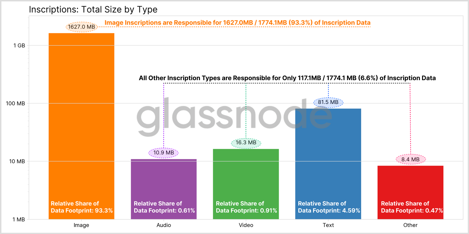Eine Inschrift besteht aus einem Inhaltstyp bekannt als MIME sowie dem Inhalt selbst, der die Form einer Byte-Zeichenkette einnimmt. Dies ermöglicht es, Inhalte von einem Webserver zurückzuliefern und direkte HTML-Inhalte zu erstellen, die die Inschriften verwenden und darstellen. Die auf der Bitcoin-Blockchain gespeicherten Daten reichen somit von Bildern über Audioclips bis hin zu einer minimalisierten Version des Videospiels Doom.