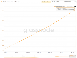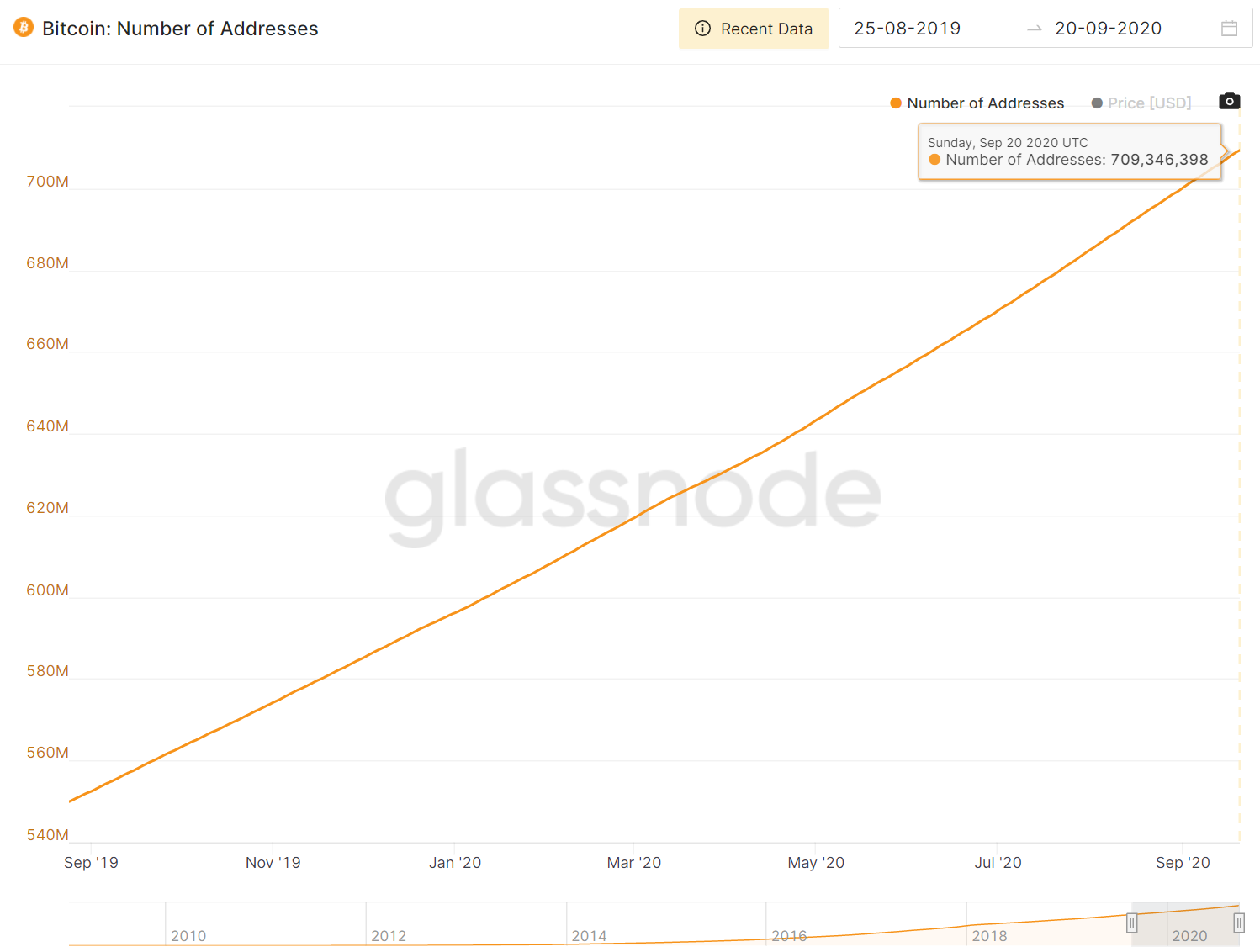 Anzahl Wallets und durchschnittliche Transaktionsgrösse des Bitcoin Netzwerks / Quelle: Glassnode.com