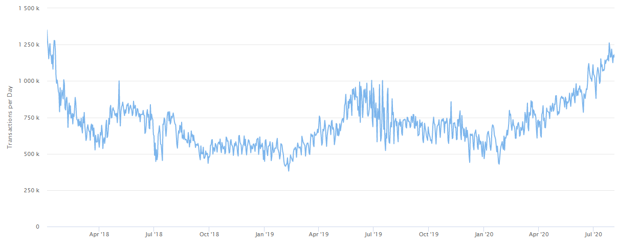Darüber hinaus weist das Netzwerk derzeit ein Zwei-Jahres-Hoch in Bezug auf die Anzahl der Netzwerktransaktionen zu einem niedrigeren Preis auf (Abbildung 5).