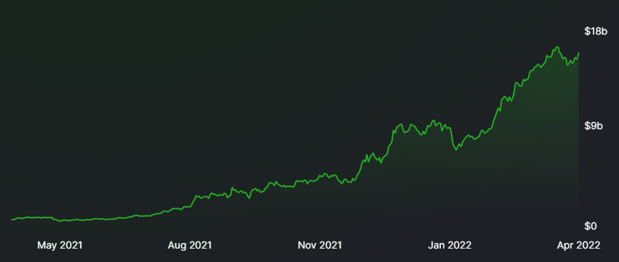 Die Terra-Blockchain mit ihrem UST-Stablecoin und zahlreichen DeFi-Applikationen etablierte sich als eines der am schnellsten wachstenden Ökosysteme im Krypto-Bereich. Ein Grossteil der Nachfrage stammt vom Sparprotokoll Anchor, das mit knapp 20% pro Jahr eine sehr attraktive Rendite für Stablecoins anbietet. So sind heute über 15 Milliarden US-Dollar in digitalen Vermögenswerten auf Anchor hinterlegt, was das Sparprotokoll zur drittgrössten DeFi-Anwendung nach hinterlegtem Gesamtwert (TVL) macht.