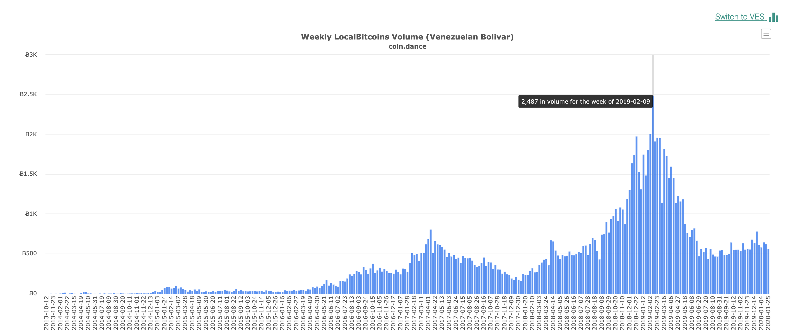 Ein weiteres Beispiel für gesteigertes Interesse an Bitcoins in krisengeschüttelten Ländern lässt sich am besten in Venezuela beobachten. Anfang letzten Jahres schrieb CNBC einen Artikel über das Volumen der in Venezuela gehandelten Bitcoins, welches ein Allzeithoch erreichte. In den ersten Februarwochen 2019 stieg die Menge der gehandelten Bitcoins um 30% auf 2'487 Bitcoins - das entspricht 8,95 Millionen Dollar pro Woche. Zum Zeitpunkt der Abfassung des Artikels deuteten die Prognosen darauf hin, dass die Hyperinflation des Landes 10 Millionen Prozent erreichen würde - was auf ein bei der Suche nach einer "stabilen" Währung entstandenes Interesse hindeutet.