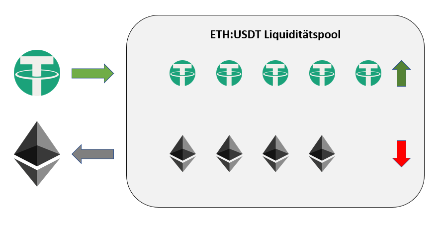 Der Preis wird also automatisch vom Automated Market Maker (AMM) Protokoll – ohne eine Drittpartei – an die Tokenreserven in den Liquiditätspools angepasst. Als Belohnung / Anreiz erhalten Liquiditäts-Provider (LP) die ganzen Gebühren. Um auch die Entscheidungsprozesse dezentral zu gestalten, verfügen die meisten DEXe über sogenannte Governance Token. So können die Nutzer beispielsweise entscheiden, ob und welche Liquiditätspools zusätzliche Anreize erhalten sollen.