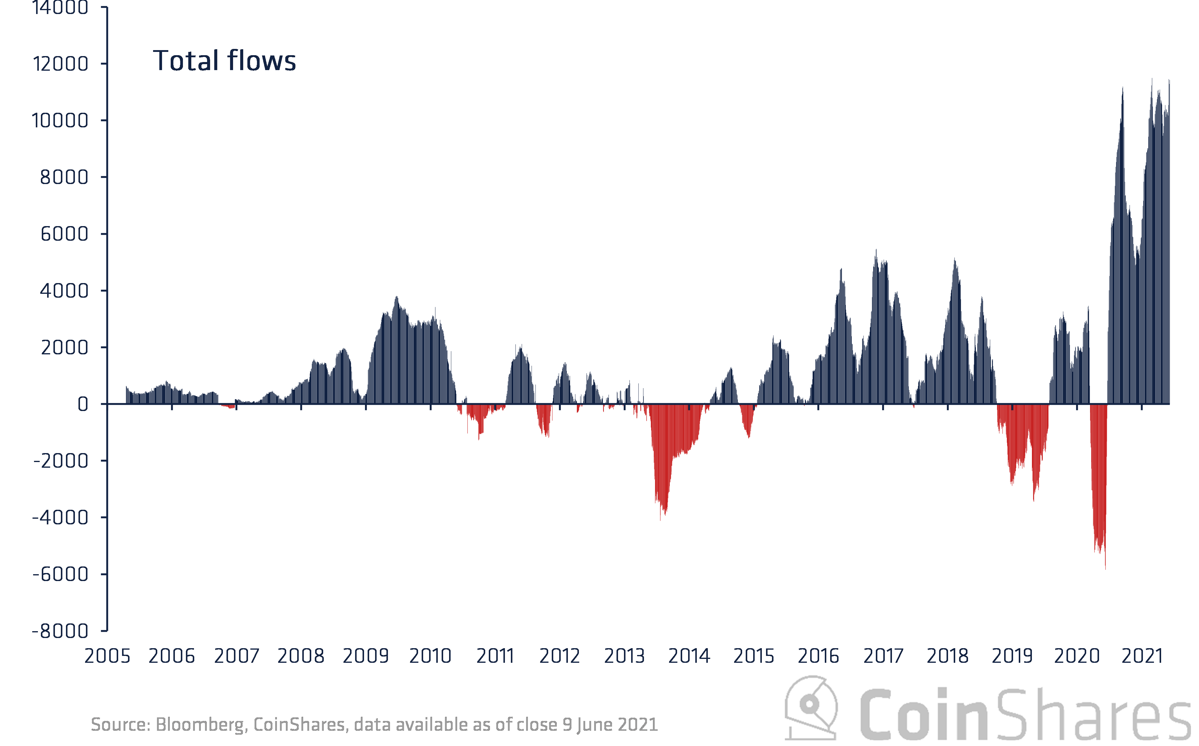 Diese Rekordzuflüsse verdeutlichen auch, dass Inflationsängste vielleicht eher zum Konsens als zu einer abweichenden Meinung werden. Es spielt auch auf den Punkt an, dass viele Anleger glauben, dass die US-Notenbank und andere Zentralbanken potenziell hinter der Kurve sind.