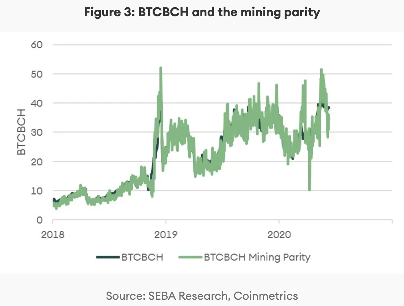 Unter Berücksichtigung dieser Beobachtungen liefern Fair-Value-Modelle aufschlussreiche Signale für langfristige Investoren und grosse Preisunterschiede. Kurzfristig ist ihre Anwendung jedoch begrenzt. Daher schlagen wir eine auf der Mining-Aktivität aufbauende Arbitrageverbotsbedingung vor: den Ansatz der Mining-Parität. Im Geiste ähnelt er dem Begriff der Münz-Parität [6], der in metallischen Systemen wie dem Goldstandard verwendet wird, um den Preis zweier Währungen zu vergleichen.