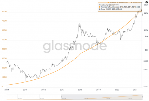 Auch finden Kryptowährungen dank ihrem attraktivem und unkorrelierten Risiko/Ertragsverhältnis immer öfter den Weg in Anlageportfolios. Die Bankenlandschaft beginnt gerade erst die neue Anlageklasse von digitalen Assets zu entdecken. Doch es steht weit mehr als "nur" ein ansprechendes Risiko/Ertrags-verhältnis hinter Kryptowährungen. Der disintermediäre Werttransfer über das Internet ist möglich und wird seit über einem Jahrzehnt zunehmend genutzt. Der Netzwerkeffekt in einem monetär getriebenen Ökosystem führt zu exponentiellen Wachstumsraten. Die Anzahl der Walletadressen im Bitcoin Netzwerk, die täglichen Werttransfers und die Hashrate, eine Metrik die die Rechenleistung zur Sicherstellung des Netzwerks misst, stehen an oder nahe den Höchstständen. Die zweitgrösste Kryptowährung Ethereum verfügt aktuell über ein noch höheres Anwendungswachstum als das Bitcoin Netzwerk.