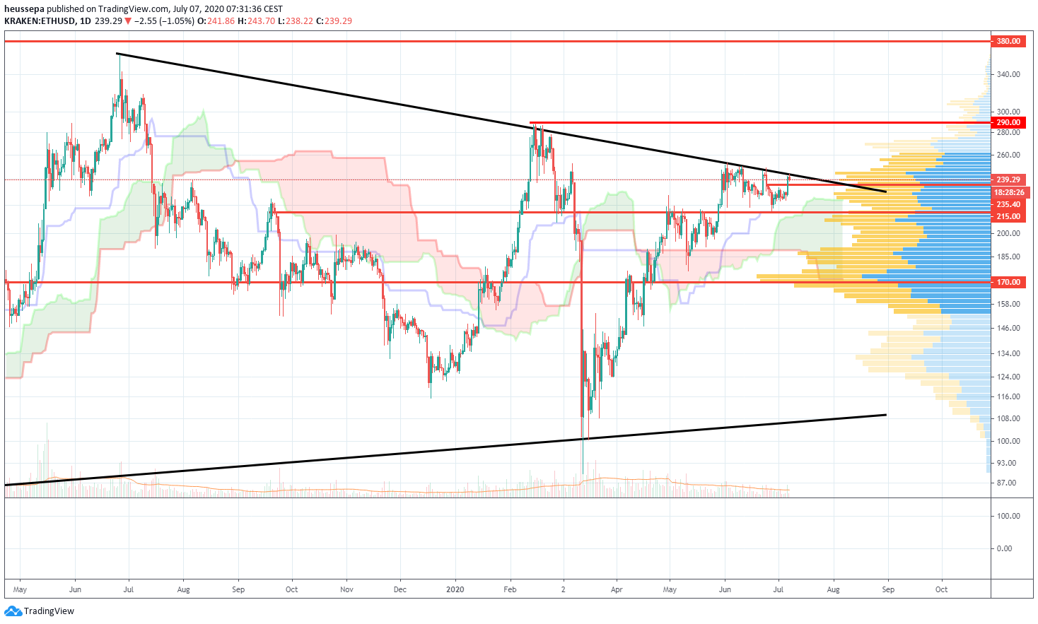 Auf Bitfinex sehen wir seit Anfang Juni einen stetigen Verkaufsauftragsblock, der sich um die 250 $-Marke bewegt. Dies bestätigt den Widerstand, den wir im Bericht letzte Woche erwähnt haben.
