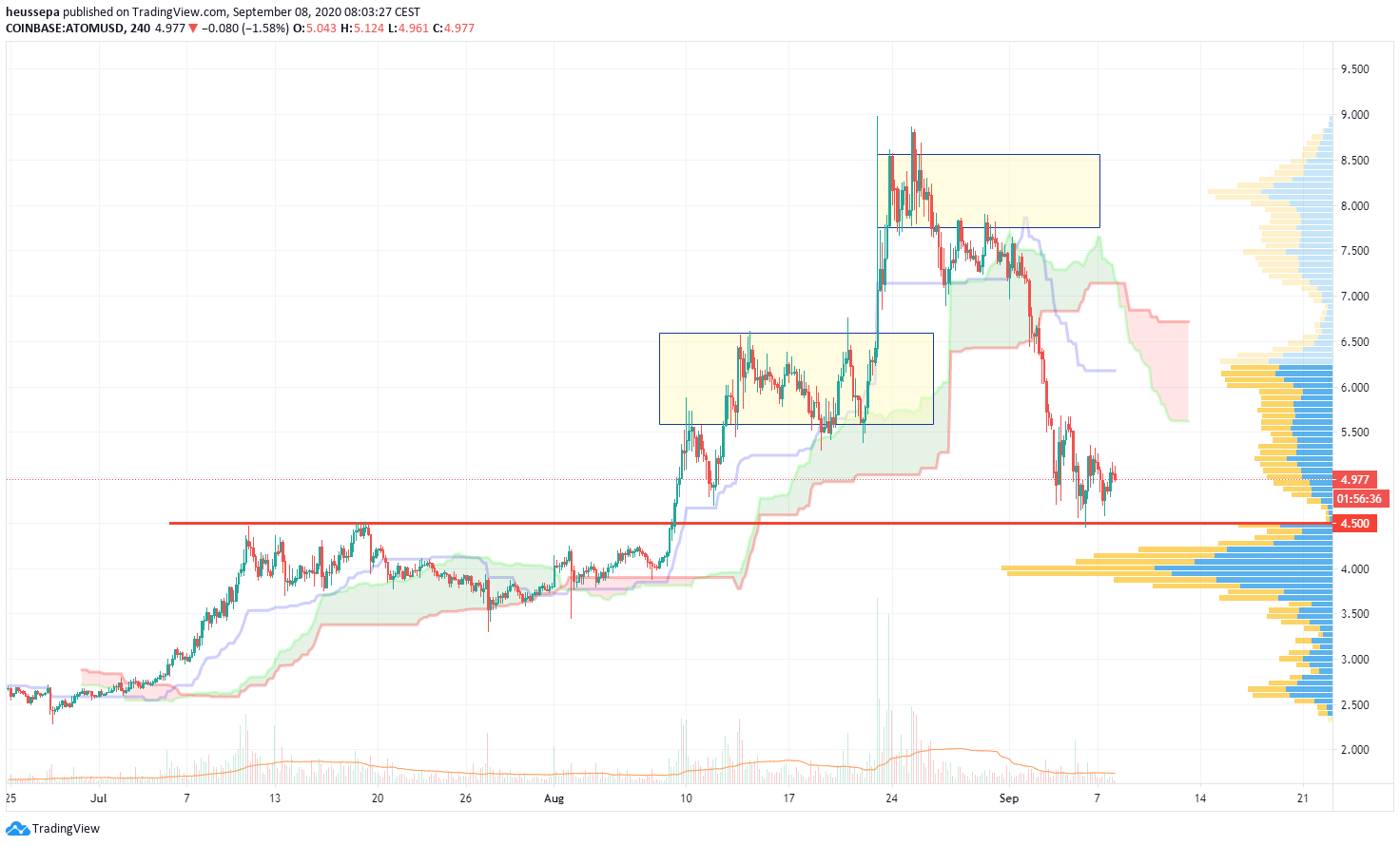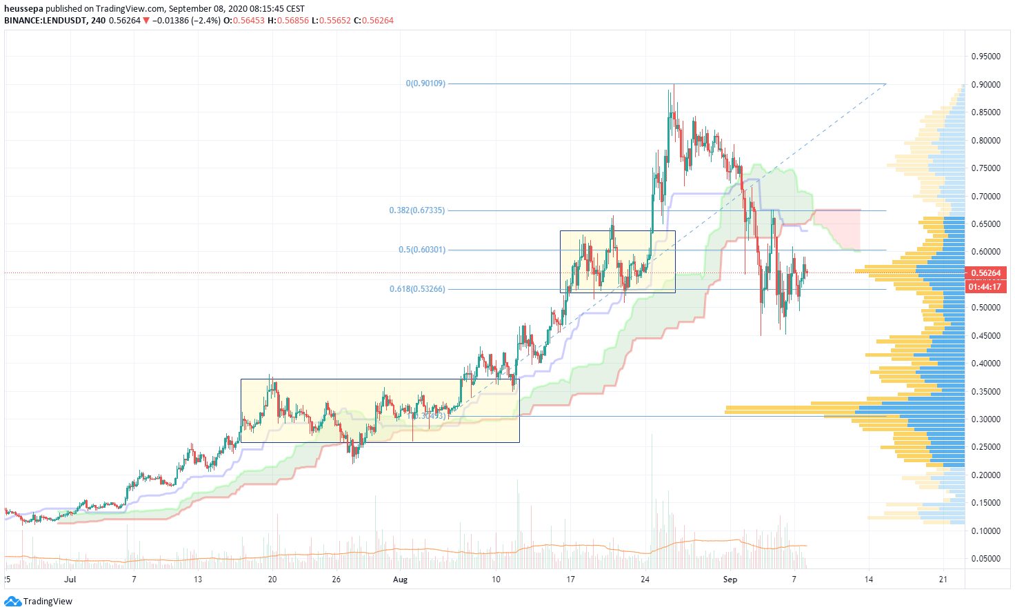 Ich mach hier dasselbe wie bei Atom und blicke zurück, wo der Preis vor dem DeFi-Hype war. In Bezug auf das Fibonacci-Niveau sahen wir eine sehr tiefe Korrektur, scheinen aber eine Distributionszone um 61,8% gefunden zu haben.