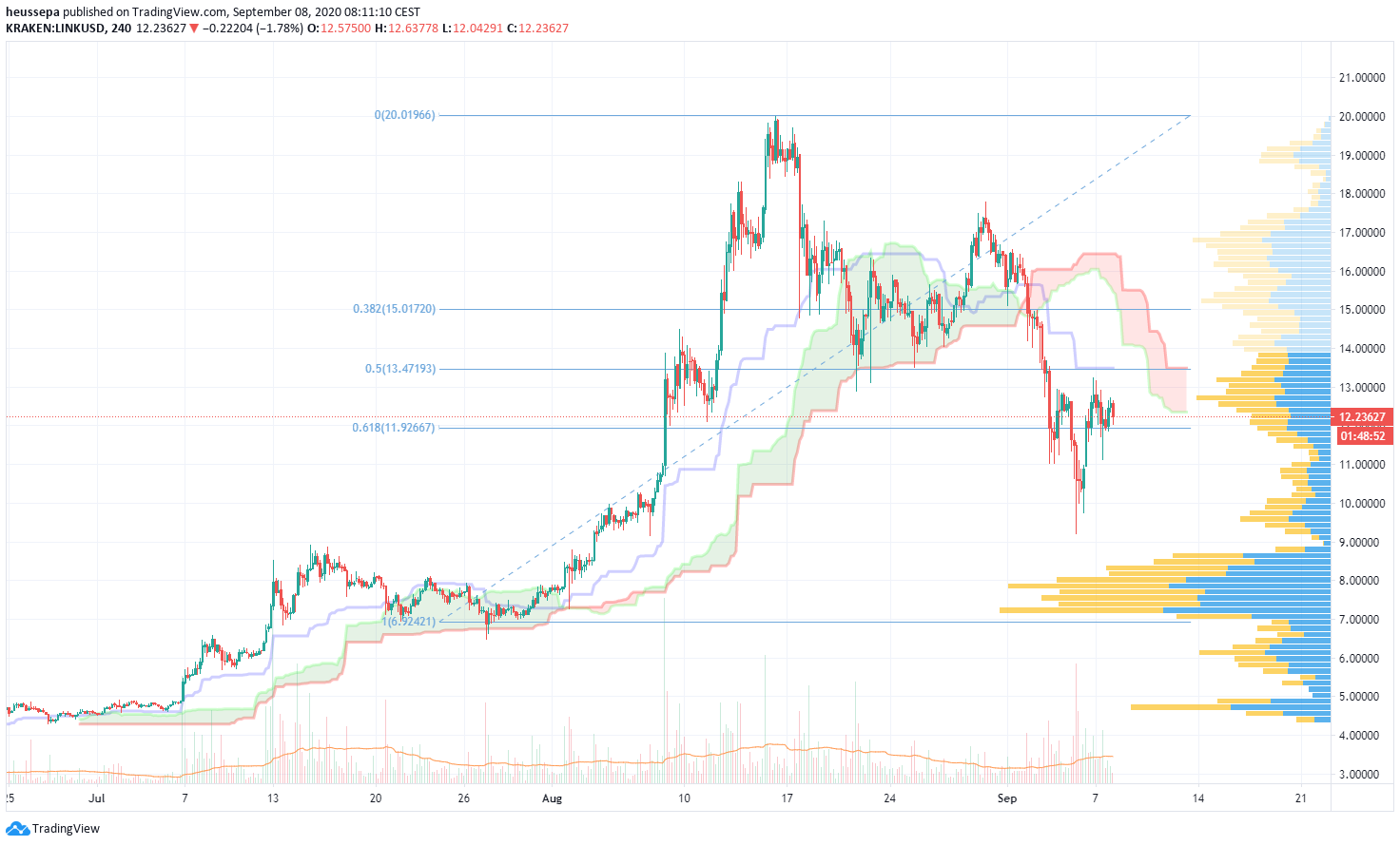 Der Ausverkauf im DeFi-Raum scheint die meisten Assets in etwa gleicher Weise betroffen zu haben. Auch hier haben wir rund 61,8% korrigiert und auch hier haben wir eine Distributionszone knapp darüber gefunden.