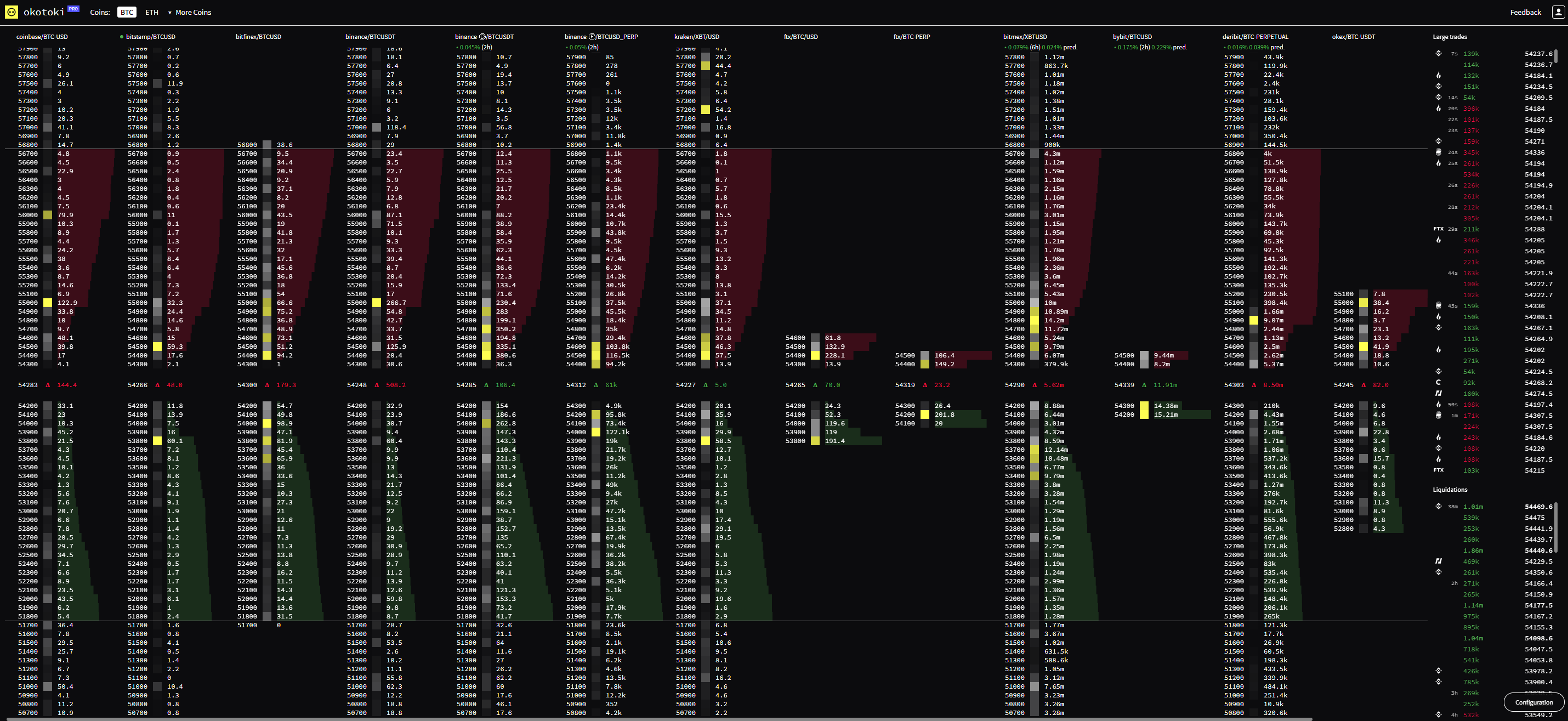 Ich erwarte, dass sich der Kurs in der nächsten Woche oberhalb dieser 47k-Marke halten wird und dass die Ichimoku-Wolke nach oben dreht (grün). Für eine gehebelte Long-Position ist es meiner Meinung nach noch etwas zu früh. Was mich ein wenig beunruhigt, sind die Orderbücher auf der Verkaufsseite (siehe Screenshot der okotoki.com App unten). Aber wir haben das schon einmal gesehen und kontinuierliche Markt-Spot-Käufe (vor allem auf Coinbase) drückten den Preis nach oben.