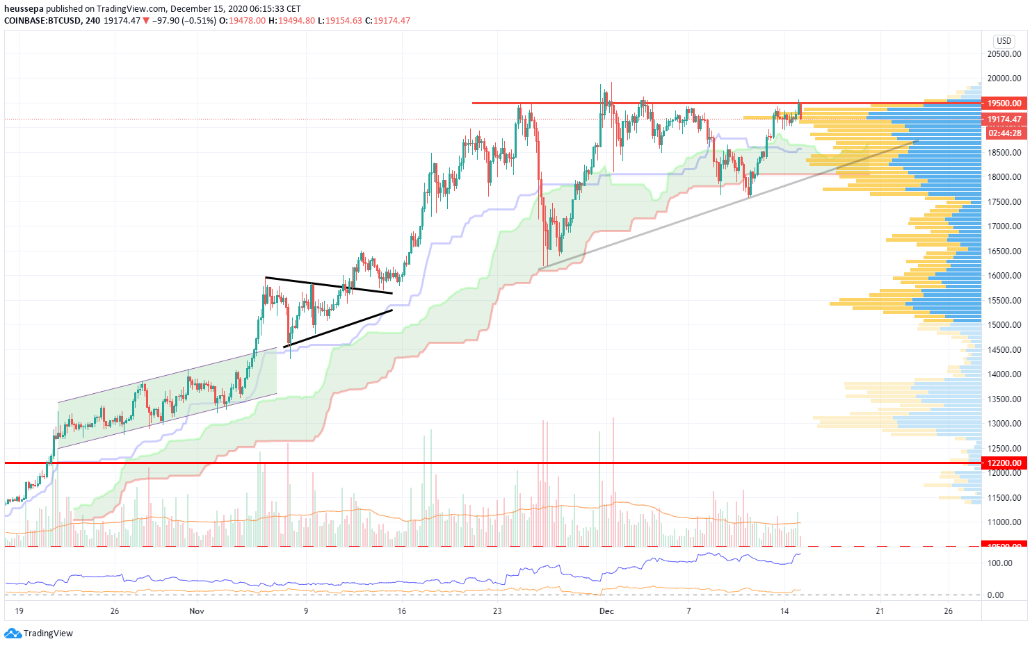 Aber auf kürzere Sicht sehe ich zu viel Druck, die 20k-Marke zu durchbrechen. Wir sind immer noch auf der Suche nach einer Korrektur innerhalb dieses möglichen aufsteigenden Dreiecks oder sogar nach einem Durchbruch des unteren Schenkels, um einige gehebelte oder verspätete Long-Positionen auszuschütteln.