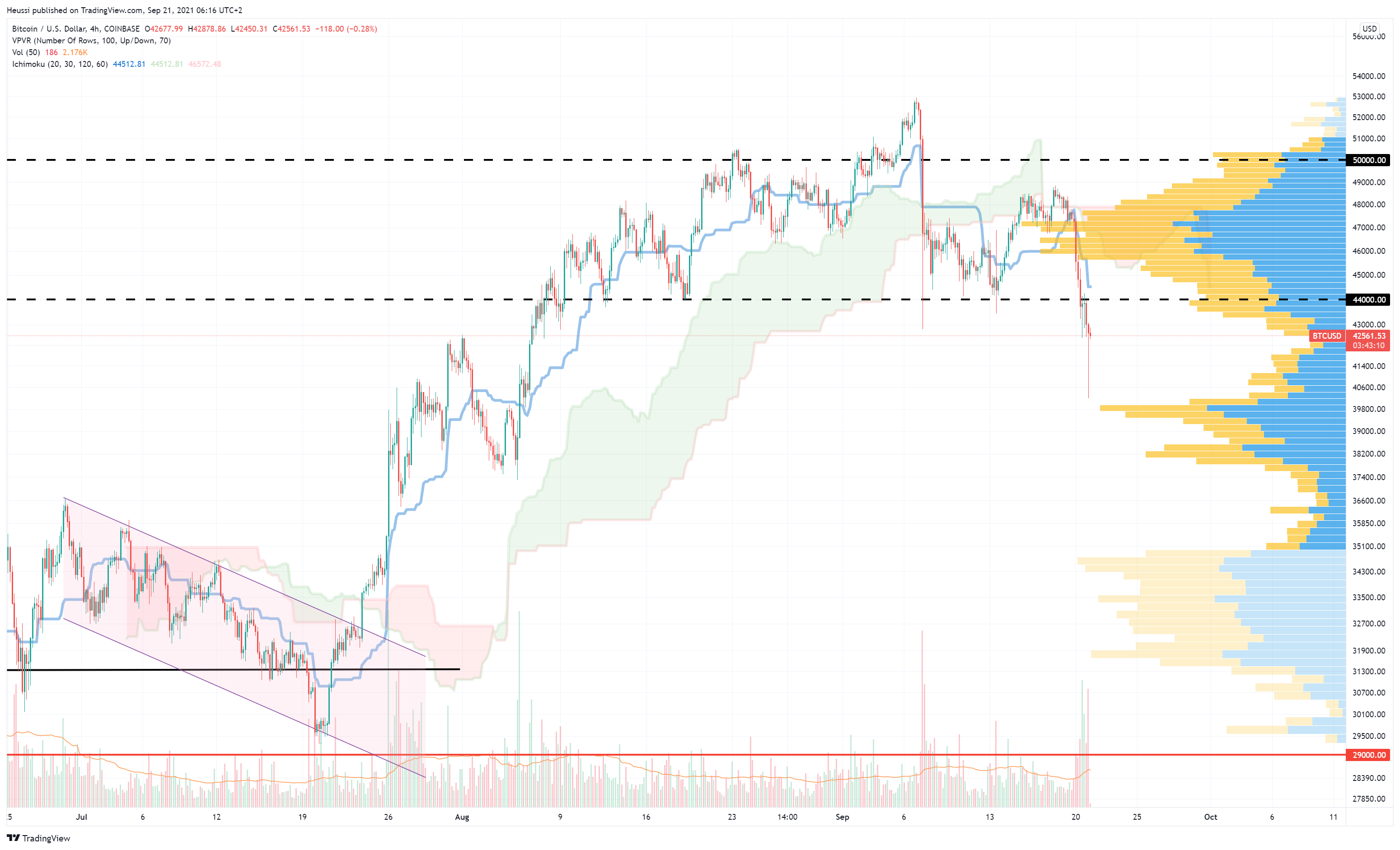 Die von Evergrande ausgelöste Krise der chinesischen Immobilienbranche hat sich in Windeseile auf Kryptowährungen ausgeweitet. Es gab eine typische "Risk-Off"-Bewegung bei Aktien/Rohstoffen und Kryptowährungen.