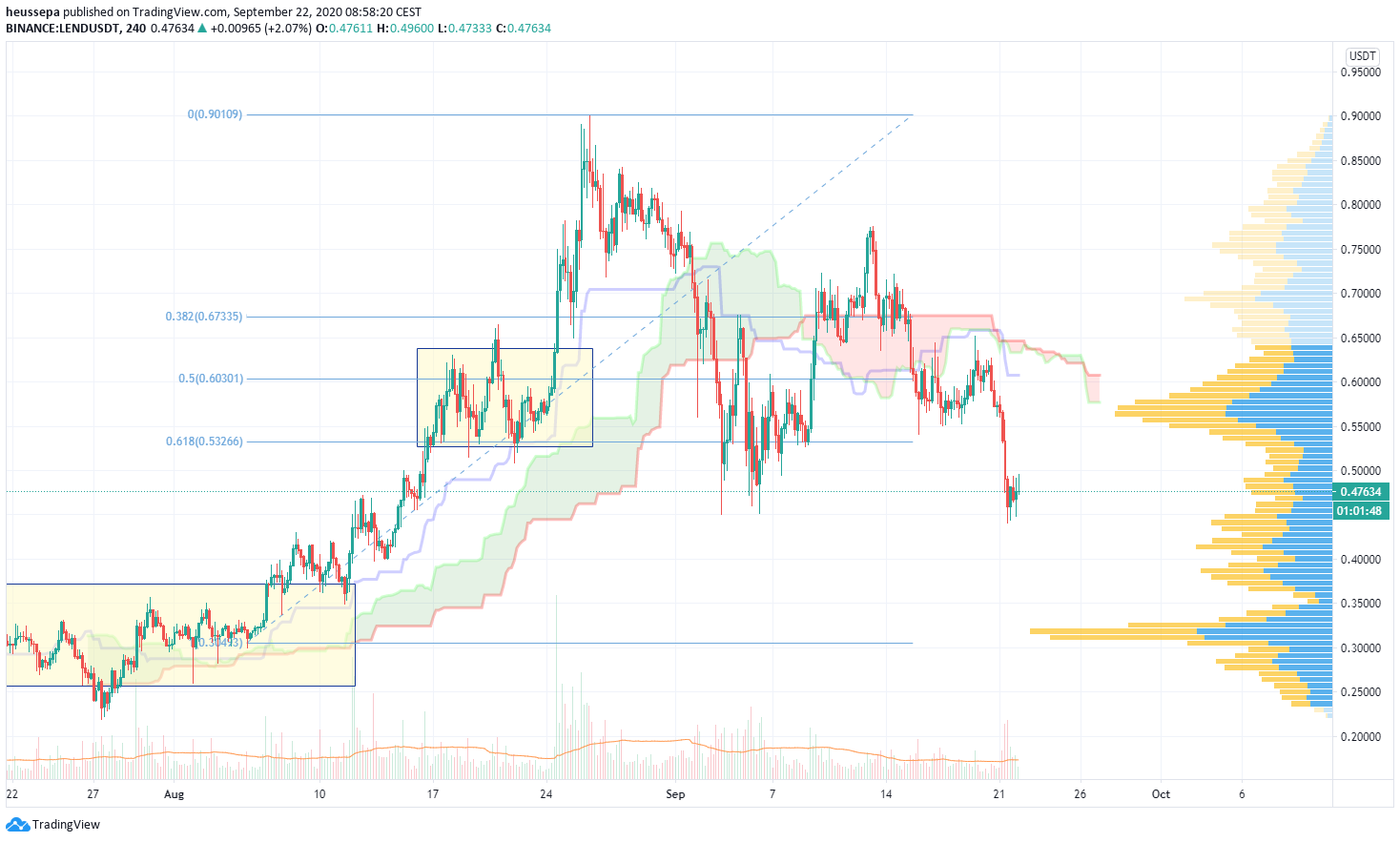 Der Liquiditätspool bei etwa 0,55 $ hielt nicht lange und wir bewegten uns wieder auf die Tiefststände von Anfang September zurück. 0,45 $ müssen halten, sonst wird es hässlich und wir sind wieder auf 0,30 $ zurück.