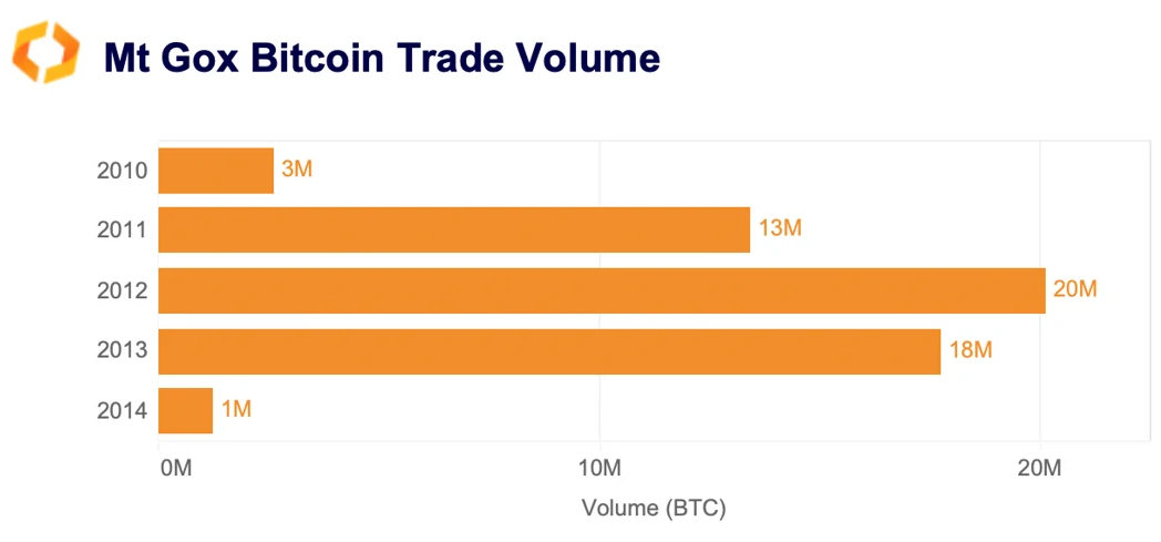 Mt. Gox war einst die grösste Krypto-Börse der Welt. Auf ihrem Höhepunkt im Jahr 2012 wickelte die Börse mehr als 20 Mio. BTC an Transaktionen ab. Die Börse brach 2014 nach einem der grössten Hacks der Kryptogeschichte zusammen, aber damals waren die gestohlenen BTC nur ein paar Millionen Dollar wert. Heute sind sie 23 Milliarden Dollar wert.