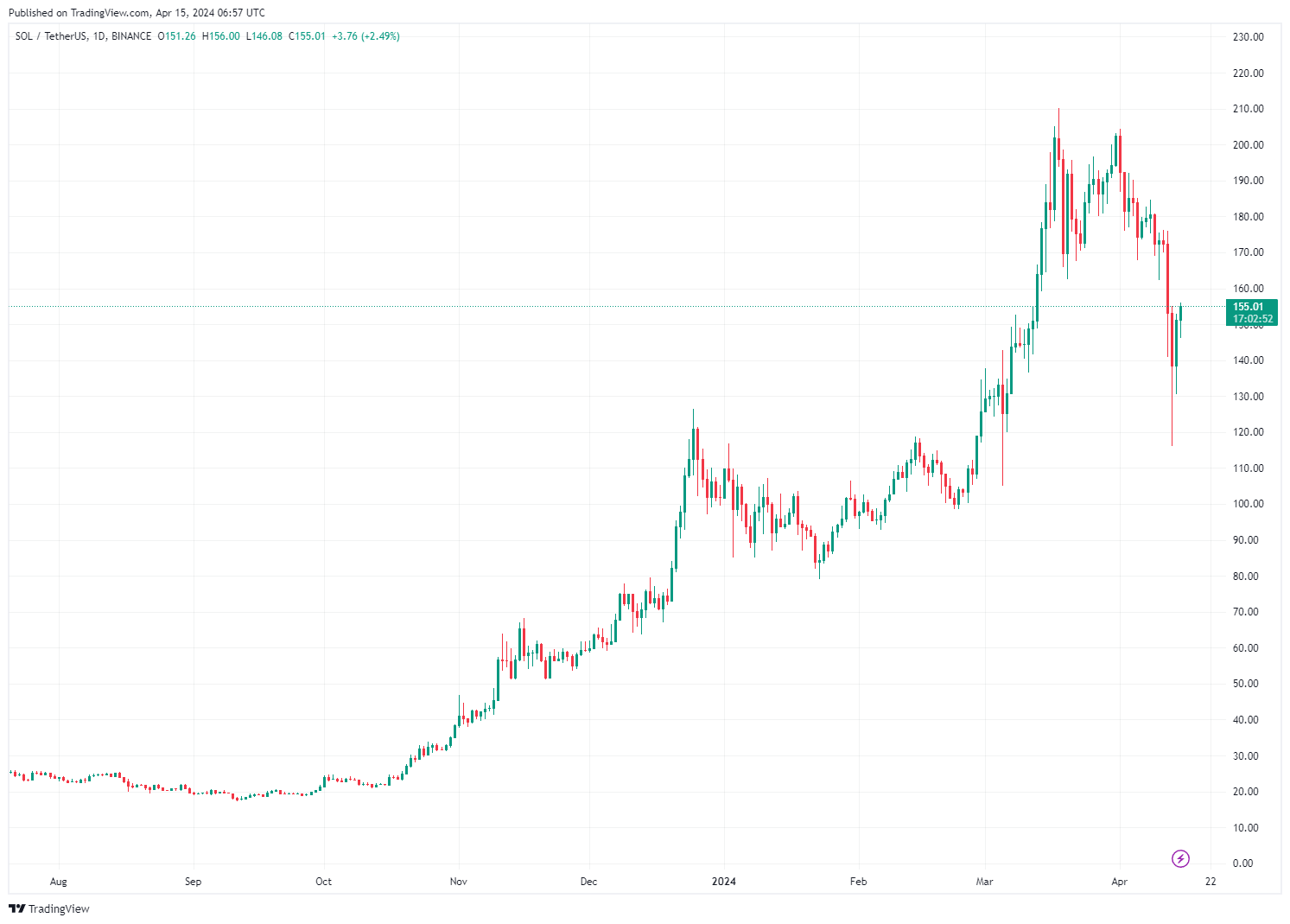 Alternative Kryptowährungen ("Altcoins") reagieren oft stärker auf Panikmomente. Die tiefere Liquidität sorgt für aggressivere Korrekturen. Genau dieses Muster wurde am Wochenende erneut ersichtlich. Während sich die Bitcoin-Korrektur in einem für Aufwärtstrends typischen Rahmen hielt, erlitten gewisse Altcoins regelrechte Flash Crashes. So erreichte die fünftgrösste Kryptowährung nach Marktkapitalisierung, Solana (SOL), auf dem liquidesten Handelspaar einen Tiefstand von 116 USD. Nur zwei Wochen zuvor handelte die Währung auf über 200 USD.