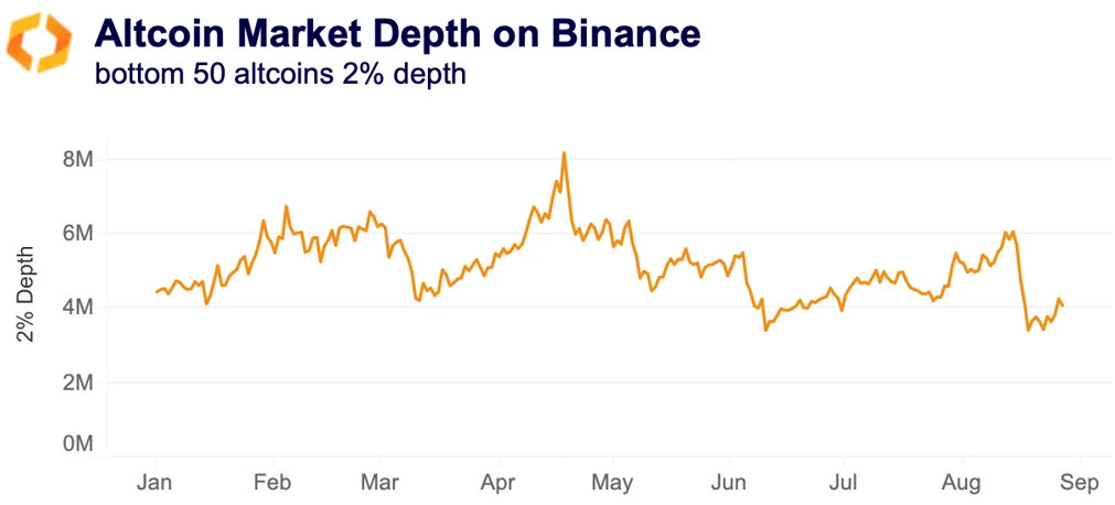 Der Trend ist nicht übermässig auffällig und zeigt, dass die Tiefe für diese 50 Token ungefähr gleich ist wie zu Beginn des Jahres, bei etwa 4 Mio. USD. Wir werden beobachten, ob sich die Liquidität nach Binance's Kontakt-Bemühungen verbessert.