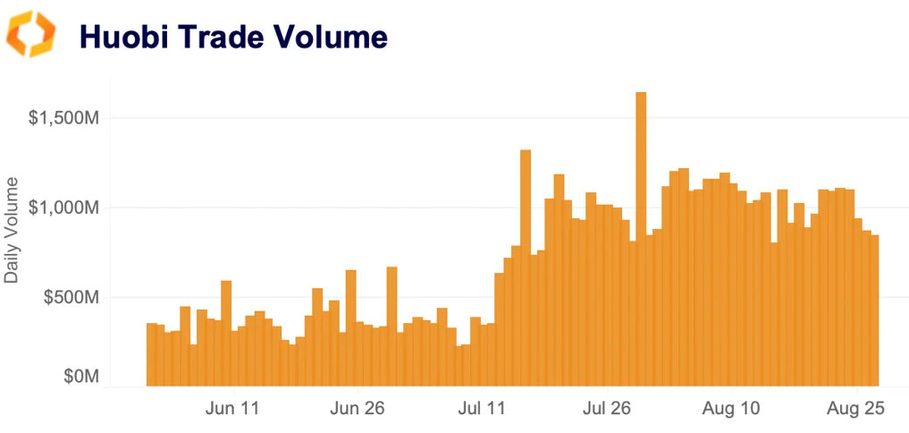 Es war ein Sommer mit geringer Volatilität und geringem Volumen, was sich stark auf das Vermögen vieler Kryptobörsen ausgewirkt hat. Doch eine grosse Börse hat sich diesem Trend widersetzt: Huobi. Dies kommt, da die Börse mit Gerüchten über eine Insolvenz und die Inhaftierung von Führungskräften zu kämpfen hat, was Anfang August zu starken Abflüssen führte. Interessanterweise hatte die negative Presse praktisch keine Auswirkungen auf das Handelsvolumen, das seit Mitte Juli nahezu unverändert geblieben ist.