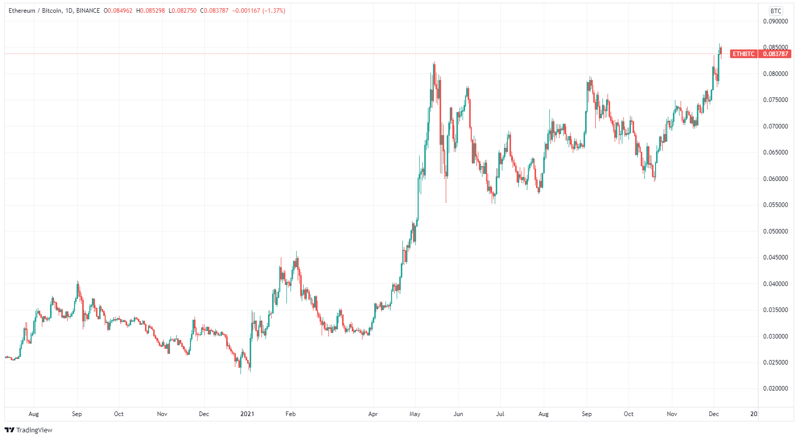 Damit bin ich bei meinem letzten Punkt angelangt: Ethereum vs. Bitcoin (ETHBTC).