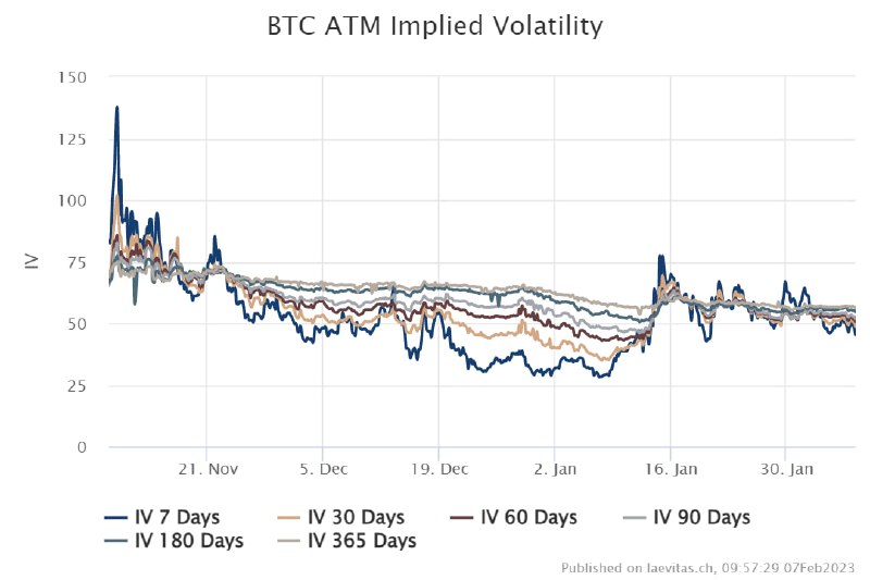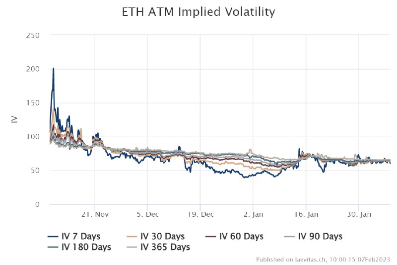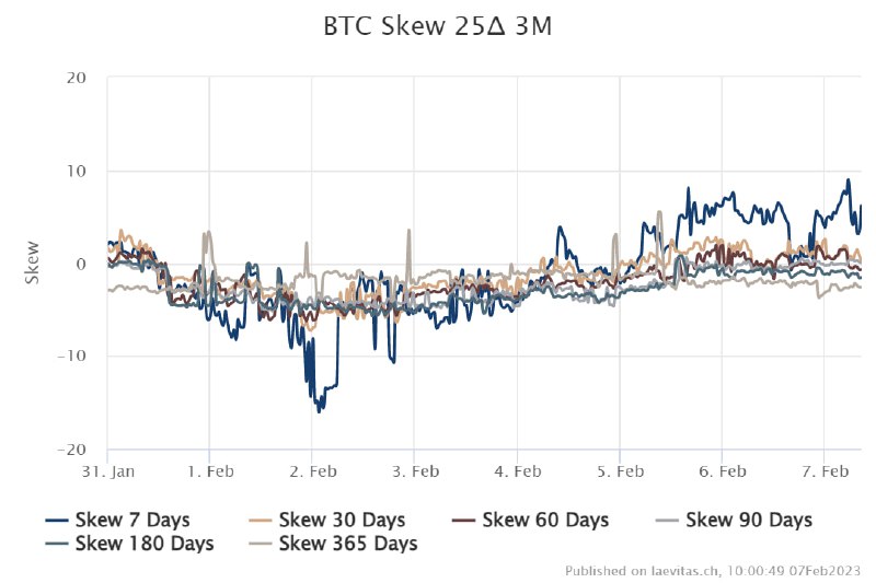 Sollte sich der Spotpreis weiterhin in einer Spanne bewegen, werden die beiden Term-Strukturen steiler, angeführt von 7- und 30-Tage-Rückgängen. Wie letzte Woche bin ich eher ein Freund von Verkäufen und von Volatilität, solange BTC und ETH keine klaren Unterstützungen bzw. Widerstände durchbrechen. Bei einem Ausbruch über 25k USD für BTC und 1.7k USD für ETH würde ich besser Long-Delta kaufen. Bei einem Ausbruch unter 22.5k USD für BTC und 1.5k USD für ETH würde ich besser Short-Delta kaufen.