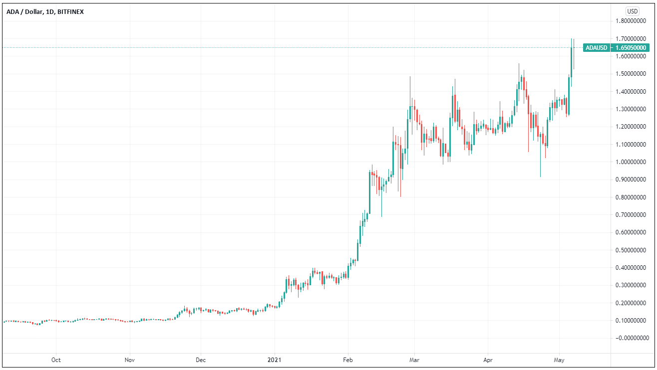 Das kommende Wochenende könnte für Cardano (ADA) interessant werden. Gestern gelang Cardano der Ausbruch aus einer zweimonatigen Seitwärtsbewegung (1-1.5 USD). Wenn die Momentum-Händler diesen Ausbruch jetzt nutzen, wäre es nicht allzu unwahrscheinlich, am Wochenende Preise um 2 USD zu sehen.