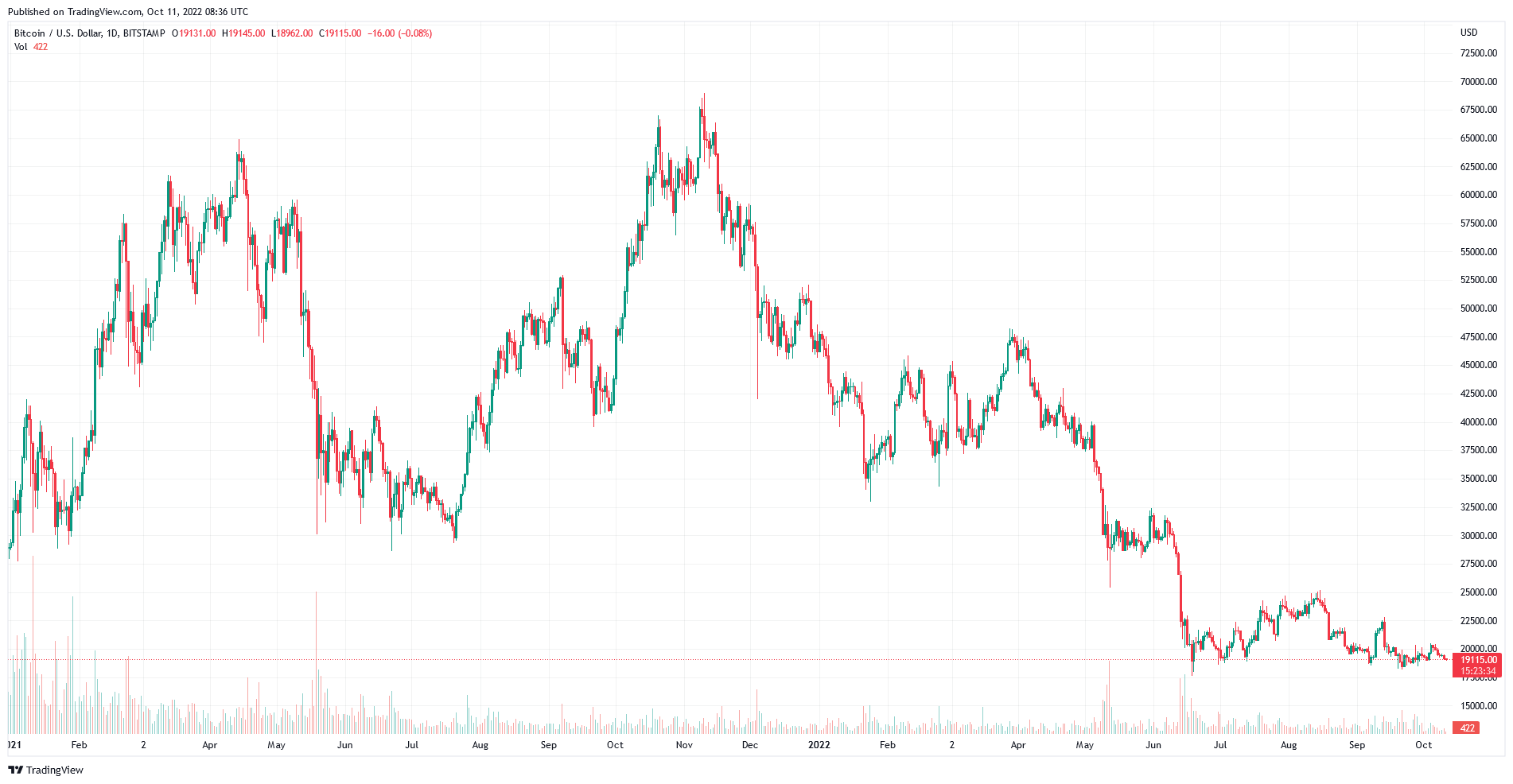 Bitcoin (BTC) liegt erneut unter der 19k Marke (-2.7% in 7 Tagen), während Ethereum (ETH) ebenfalls etwas nachgibt und mit einem Preis von 1.28k gehandelt wird (-3% in 7 Tagen). Wieder einmal war die Woche träge und von makroökonomischen Schlagzeilen bestimmt. Kryptowährungen halten sich besser als traditionelle Anlagen und die Volatilität nimmt ab, während der VIX die Marke von 32 durchbrochen hat, MOVE über 148 liegt und DXY bei 113 handelt. In Kürze werden wir das FOMC-Protokoll und die CPI-Zahlen erhalten.