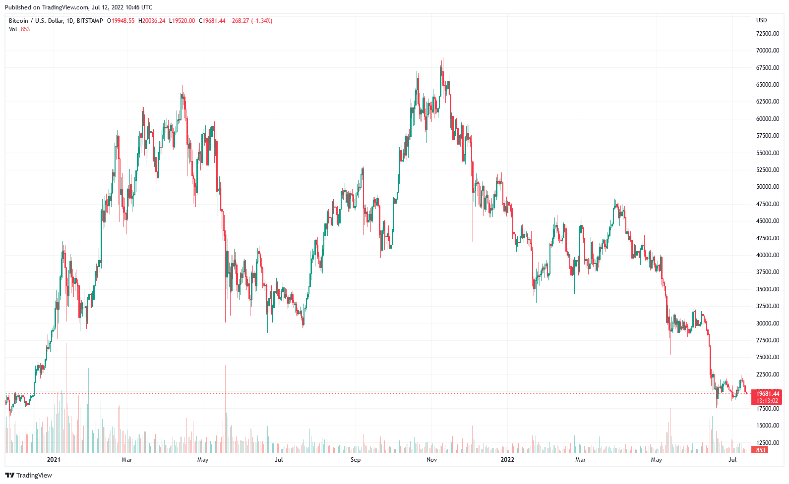 Derzeit handelt Bitcoin (BTC) bei 19'660 USD (-2.9% in 7 Tagen), Ethereum (ETH) bei 1'050 USD (-8% in 7 Tagen), und der ETH/BTC-Spread liegt bei 0.054 (-5.1% in 7 Tagen).