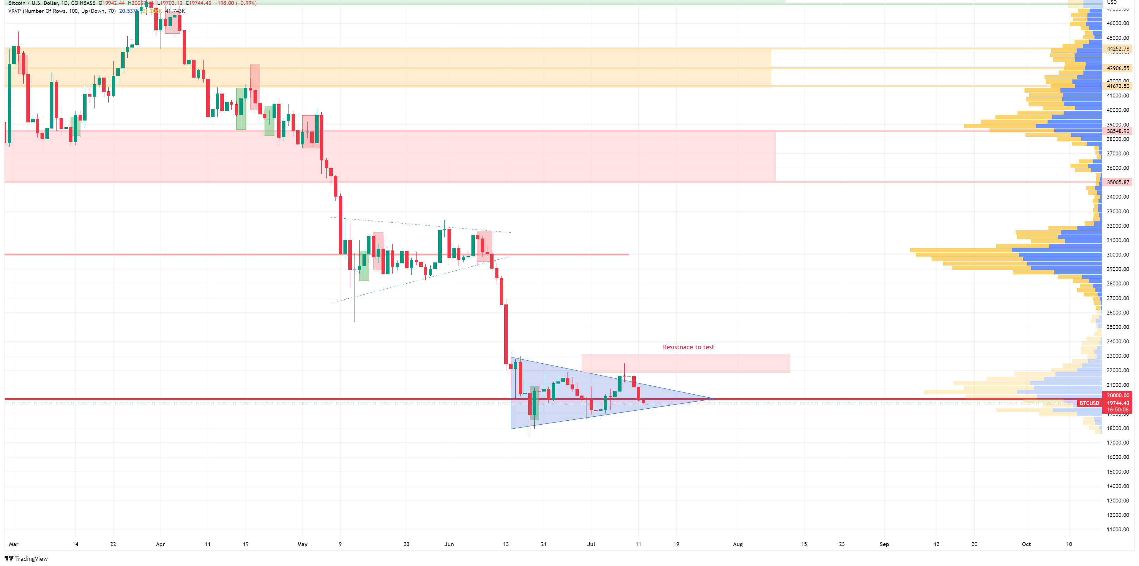 Diese Zahlen werden einen direkten und unmittelbaren Einfluss sowohl auf digitale Vermögenswerte als auch auf traditionelle Assets haben, da die FED am 27. Juli über den Zielsatz entscheiden wird. Damit versuchen sie die Inflation auf das längerfristige Ziel von 2% zu senken und Preisstabilität herzustellen. Der Markt geht mit einer Wahrscheinlichkeit von 93% von einem Zielsatz von 225-250 Basispunkten aus. Dies bedeutet wahrscheinlich weitere 75 Basispunkte.
