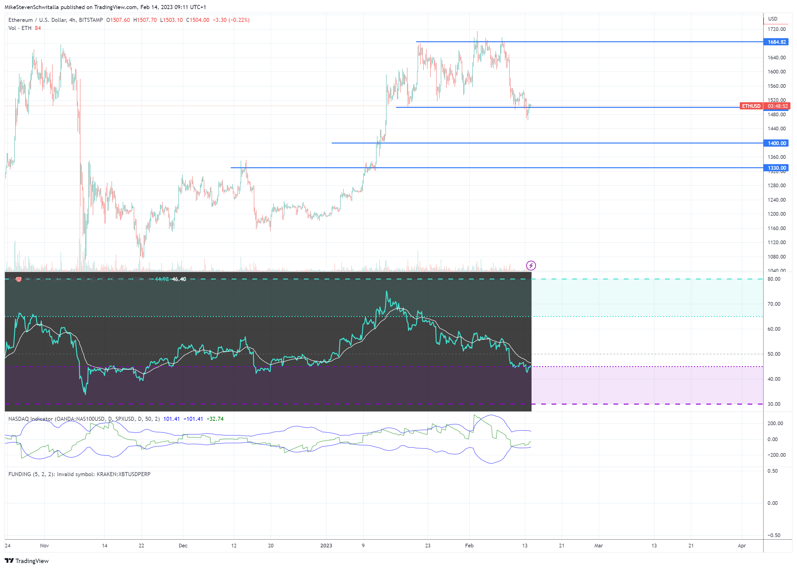 ETH wird an der wichtigen Unterstützungsmarke von 1'500 USD gehandelt. Sollte diese Marke von EoD nachhaltig nach unten durchbrochen werden, gibt es bis 1'400 USD keine Unterstützung mehr. Auf der Oberseite bildet das jüngste Hoch bei 1'685 USD einen starken Widerstand.