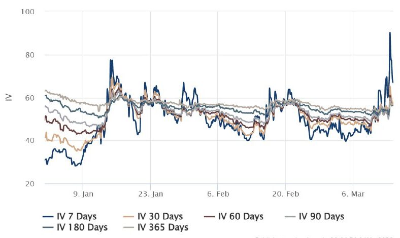 Das kurzfristige Gamma hat sich besonders gut entwickelt, da die kurzfristigen Volatilitäten über 100% gestiegen sind. Dennoch hat sich das hintere Ende nicht wirklich bewegt, da es auf nachhaltigere Bewegungen wartet. Ich bin der Meinung, dass die langfristige Volatilität weiterhin ein gutes Geschäft ist und dass die kurzfristige Volatilität noch nicht vorbei ist. Neben dem Kauf von Calls oder Low-Delta-Strangles bin ich der Meinung, dass Call-Spreads und eine Put-Spread-Struktur diesen Trend besser einfangen können.