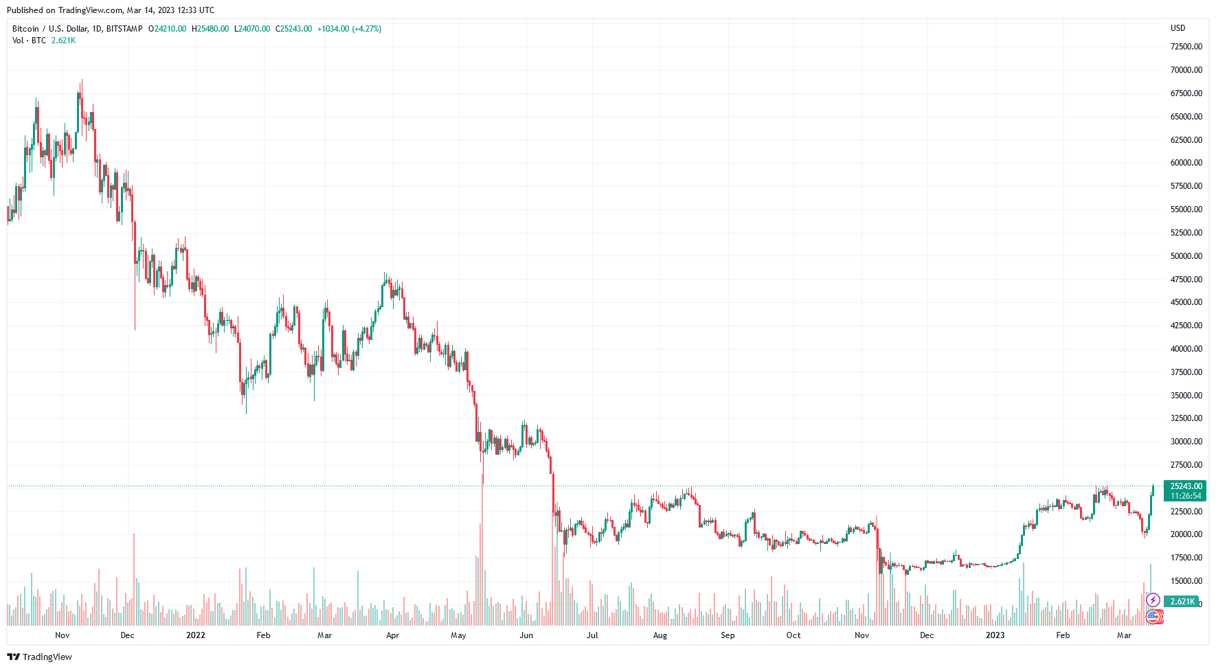 Ich glaube, dass die Regulierungsbehörden darauf abzielen, Kryptowährungen zu diskreditieren. Dazu machen sie die aktuellen Bankenzusammenbrüche verantwortlich. Doch ist eine solche Kampagne angesichts der drängenden Probleme zum jetzigen Zeitpunkt sinnvoll? Digitale Vermögenswerte sind ein Nischensektor, der von der Dynamik und den Investitionen der Kleinanleger angetrieben wird. Kurzfristig, wenn die negative Stimmung anhält, werden die Preise für BTC und ETH wahrscheinlich in die Höhe schnellen.