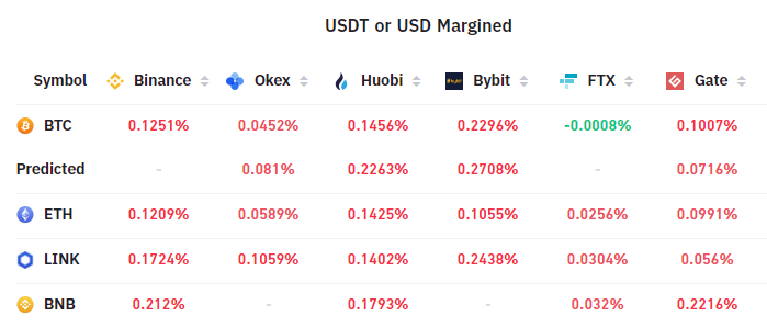 Die Futures-Finanzierungsrate ist über alle Börsen hinweg weiterhin hoch. Das bedeutet, dass sich viele Händler mit gehebelten Long-Positionen im Markt befinden. Im Falle einer tieferen Korrektur könnte das zu einigen Liquidationen und einer aggressiveren Bewegung nach unten führen.