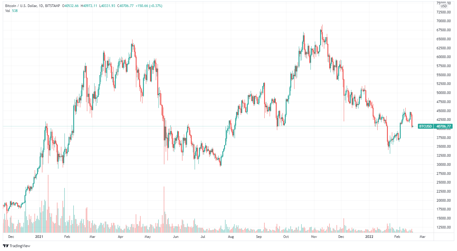 Bitcoin (BTC) bewegt sich im Bereich von 40'000 und 45'000 USD. Ich denke, dass es bei diesem Hin und Her bis zur FOMC (Fed) Sitzung wenig Spielraum nach oben oder unten geben wird. Der diesjährige Markt ist viel schwieriger zu spielen als 2021, aber auch interessanter!