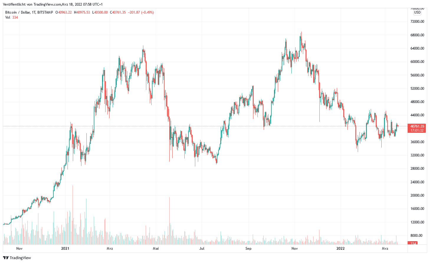 Die restriktiven Signale der FOMC-Sitzung vom Mittwoch - eine angekündigte Zinserhöhung um 0.25% und Prognosen für sechs weitere Zinserhöhungen um 25 Basispunkte in diesem Jahr - konnten die starke Marktdynamik, die sich im Laufe des Tages bereits aufgebaut hatte, nicht stoppen. BTC wurde deutlich über 41k gehandelt, und der Aktienmarkt (angeführt vom NDX) schloss 3.77% höher.