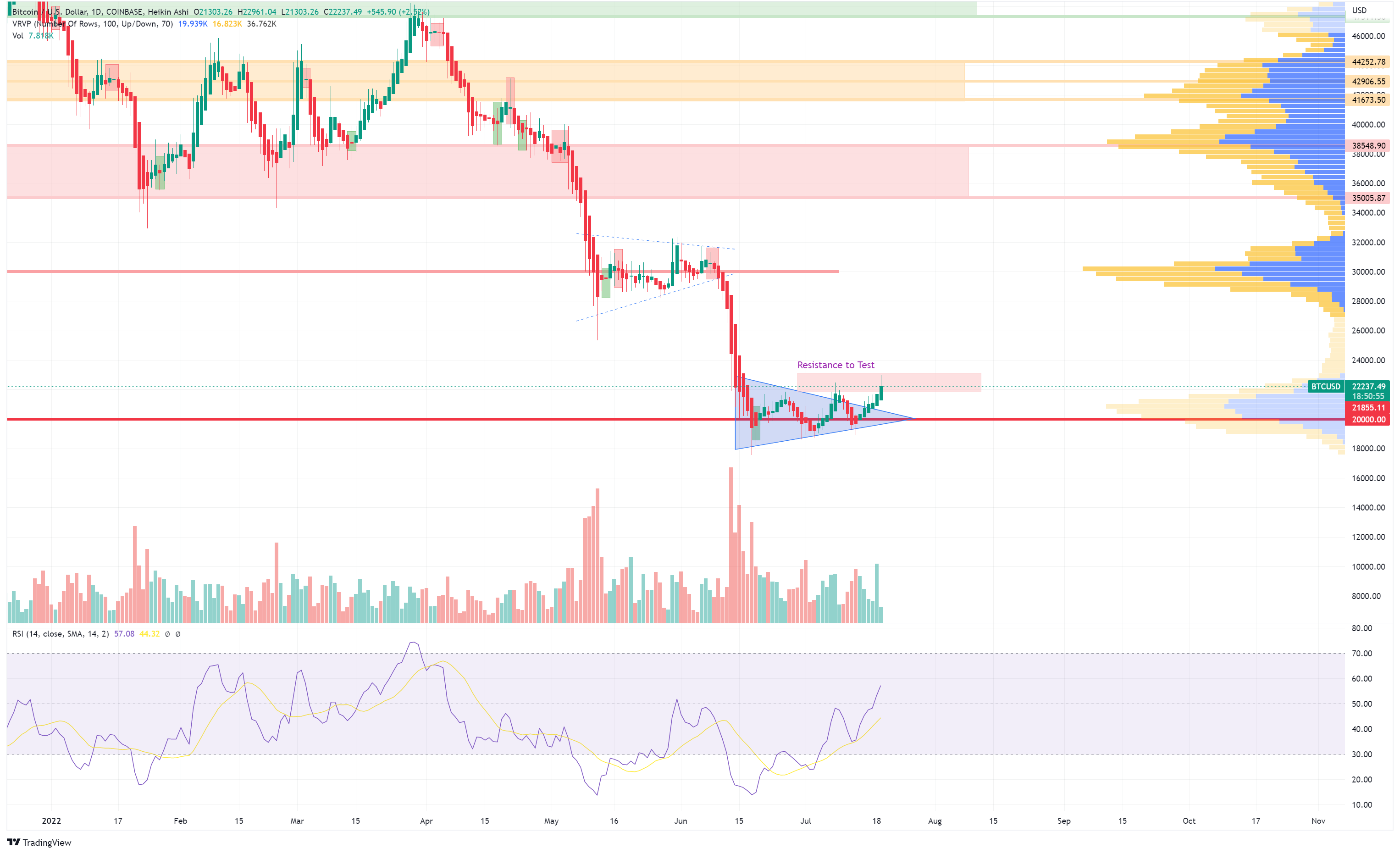 In der Zwischenzeit hat BTC/USD das Dreieck durchbrochen und testet nun erneut den Widerstand bei 23k USD. Die Heikin Ashi-Kerzen sprechen weiterhin für das Momentum und der RSI liegt immer noch unter 60 (noch nicht überkauft). BTC wird wahrscheinlich zwischen 18.5k USD - 22k USD schwanken im Falle eines Nichtüberwindens des oberen Widerstands. Andernfalls kann er bis zu 25k USD steigen. In beiden Fällen erwarte ich, dass ALTs und DeFi als Nebeneffekt der Risikobereitschaft des Marktes eine bessere Performance als BTC erzielen werden.