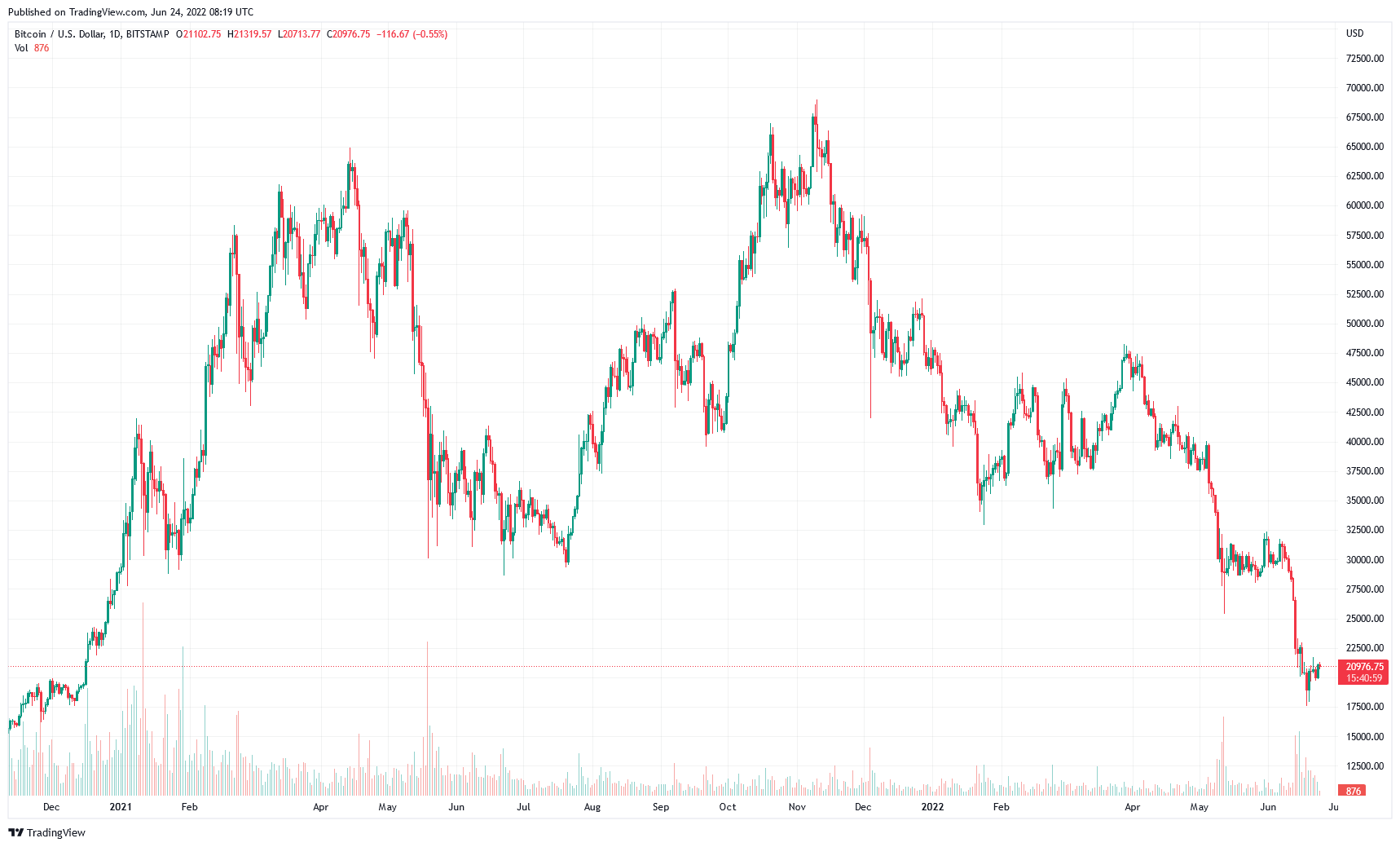 Diese Woche erholte sich der Kryptomarkt nach einem turbulenten Wochenende. Bitcoin erlebte einen Ausverkauf und wurde am Samstagabend unter 18'000 USD gehandelt, machte aber schnell alle Verluste wieder wett. Derzeit handelt Bitcoin (BTC) bei 20'900 USD (+2.6% in 7 Tagen), Ethereum (ETH) bei 1'150 USD (+7.8% in 7 Tagen), und der ETH/BTC-Spread liegt bei 0.055 (+5% in 7 Tagen).