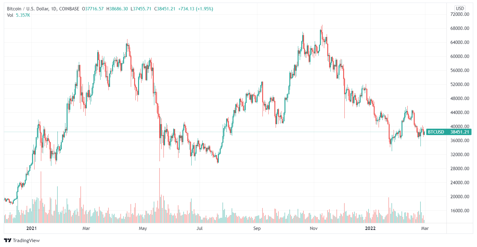 Der Kryptomarkt hat sich etwas erholt, ist aber immer noch sehr anfällig, während alle Augen über das Wochenende auf die Ukraine gerichtet waren. Es gibt eine Fülle von Nachrichten und Materialien zu den verschiedenen Aspekten und Ansichten in Bezug auf die kritische Situation in der Ukraine. Es ist unmöglich, das Ergebnis vorauszusehen oder vorherzusagen. Russland ist durch den Ausschluss aus dem SWIFT-System stark sanktioniert, scheint sich aber von dem zunehmenden Druck der NATO nicht beeindrucken zu lassen.
