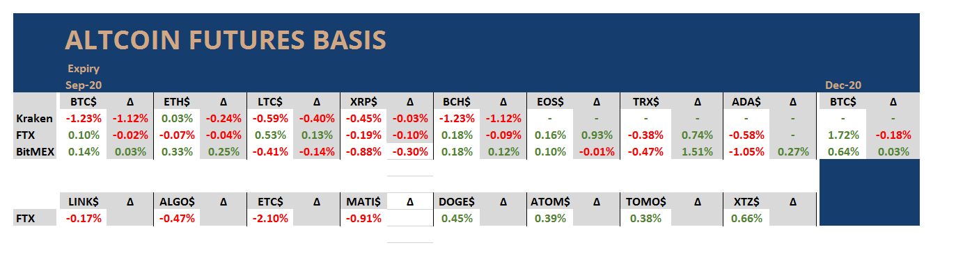 Die Altcoin-Futures bewegten sich auf ähnliche Weise und gaben eine hohe Prämie auf; einige von ihnen handeln eindeutig mit Backwardation.